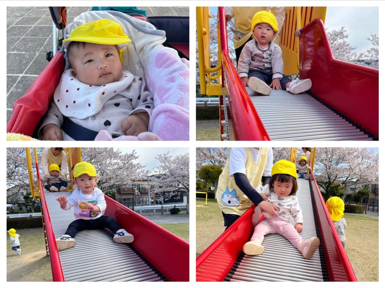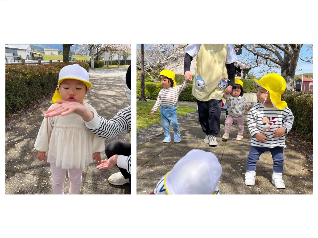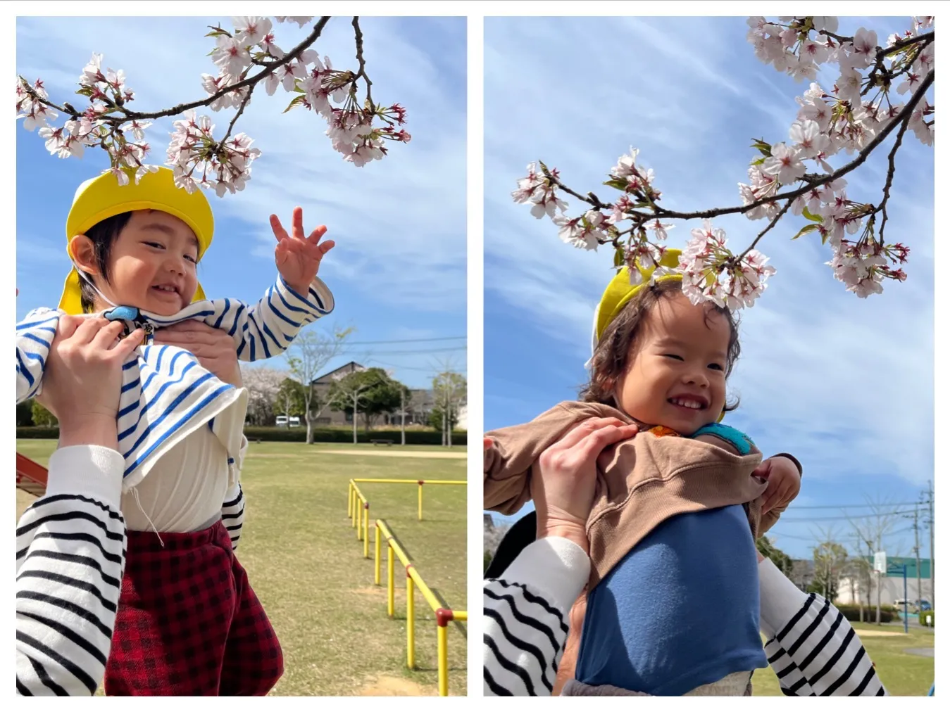 今日もいいお天気でしたね。まだまだ桜が楽しめそうだったので香田公園に行ってきました。公園の桜は花吹雪を散らしながら風に揺れていてとてもきれいでした。花びらで遊んだり、眺めたり、もちろん大型遊具でも楽しめていた子どもたちです。