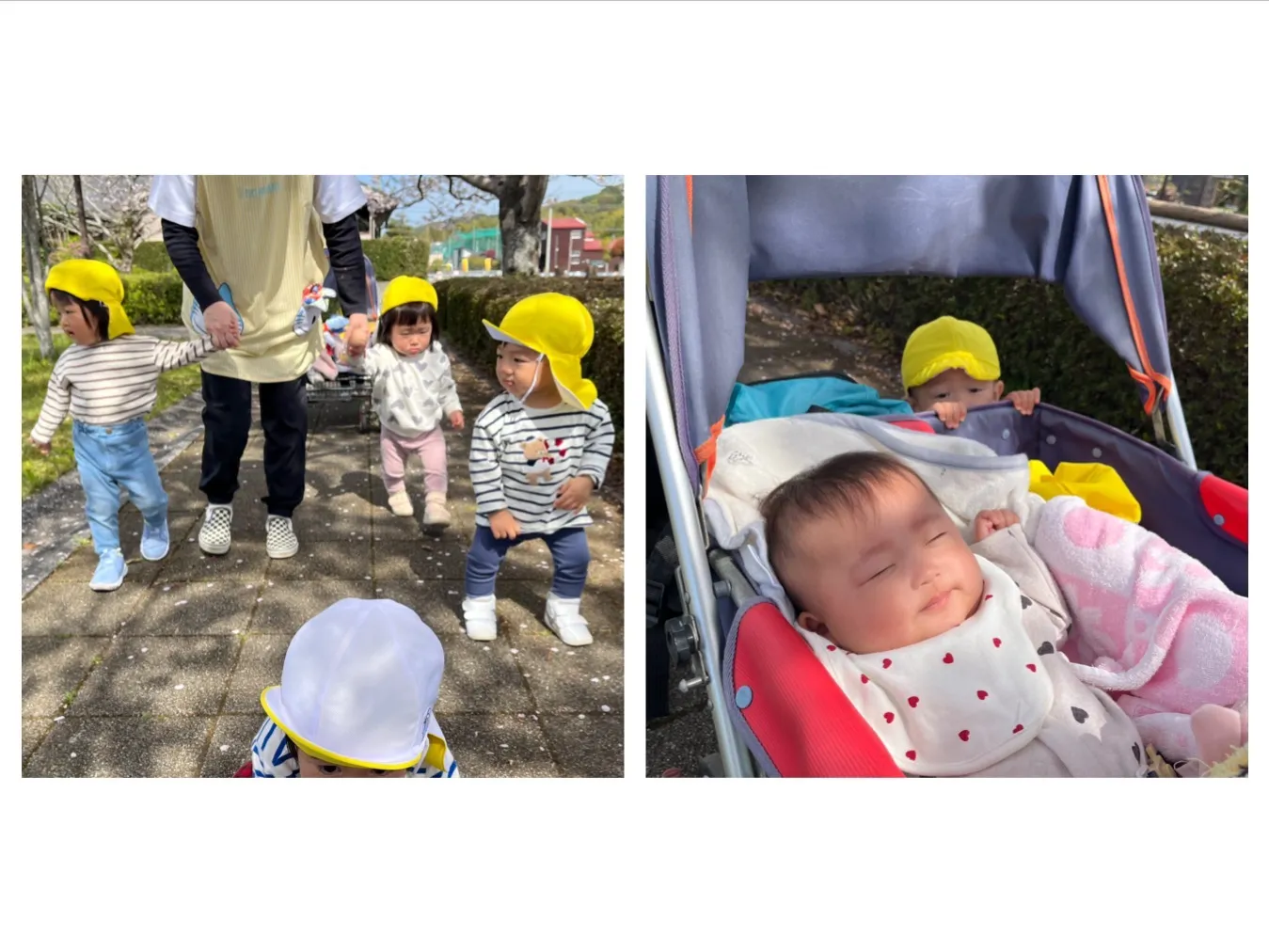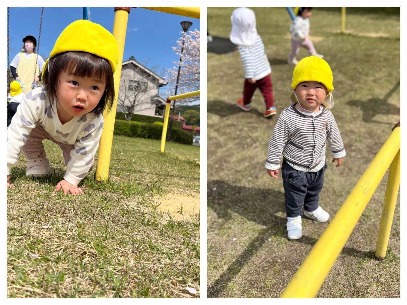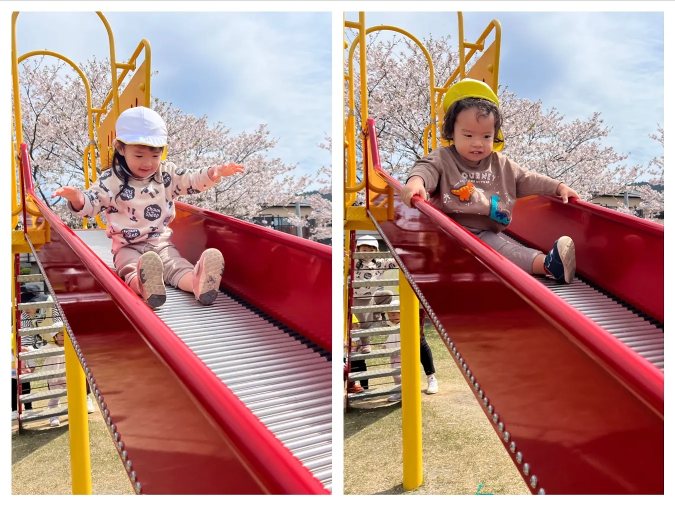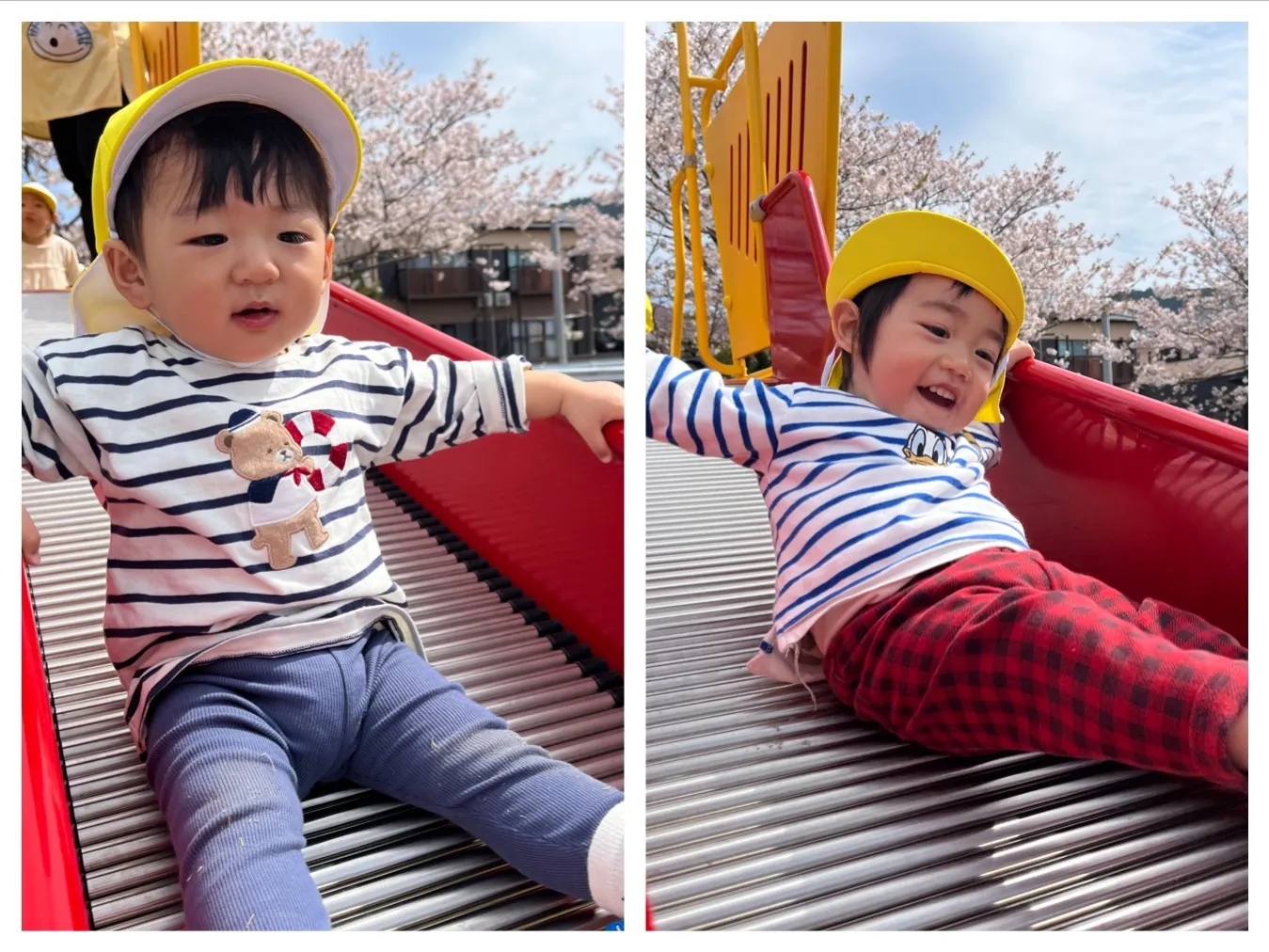 今日もいいお天気でしたね。まだまだ桜が楽しめそうだったので香田公園に行ってきました。公園の桜は花吹雪を散らしながら風に揺れていてとてもきれいでした。花びらで遊んだり、眺めたり、もちろん大型遊具でも楽しめていた子どもたちです。