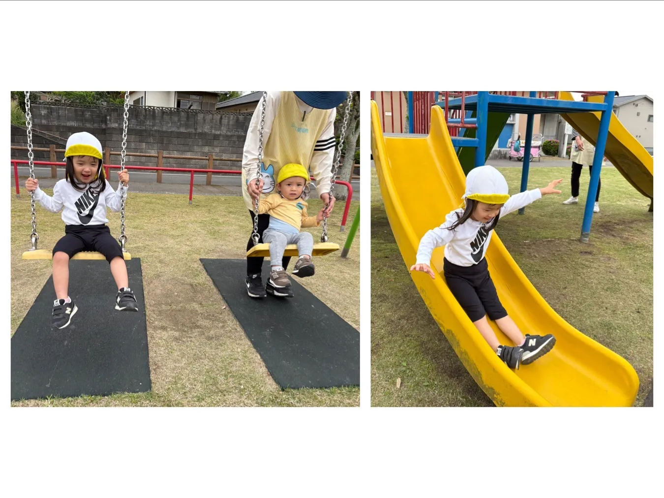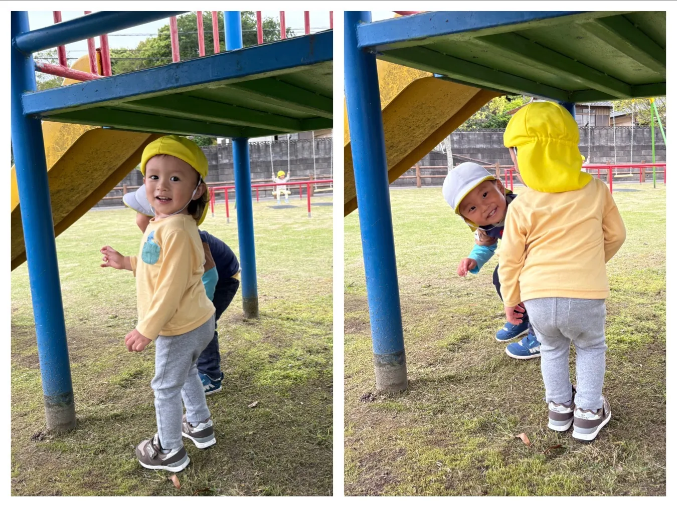 今日は山田島公園に行ってきました。新年度になって初めての山田島公園、、初めてのお友達は公園探索から始まり、来たことがあるお友達は大型遊具を思いっきり楽しめていました。ブランコや滑り台、追いかけっこ、、沢山遊べて笑顔いっぱいのお友達でした。