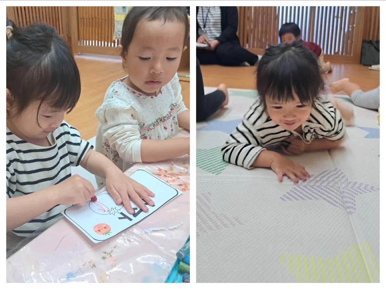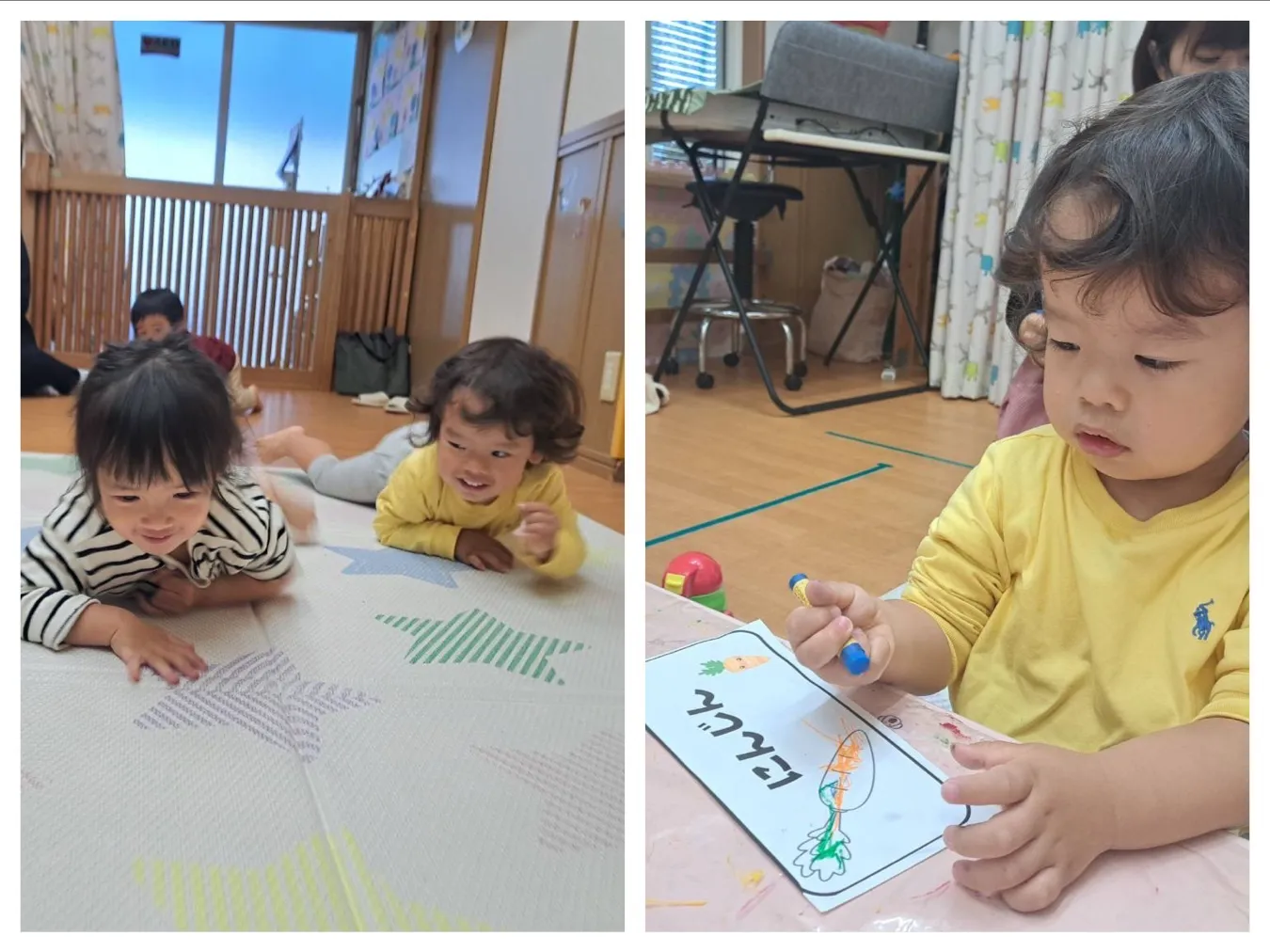 今日は、にこにこ菜園のお野菜に立て札を立てるために名前カードを作りました。お野菜の名前が書いてあるカードのイラストの色を塗っていくときには、野菜のお名前やどんな色かを言いながら上手に塗っていくことが出来ていました。今度菜園にいって立てたいと思います。