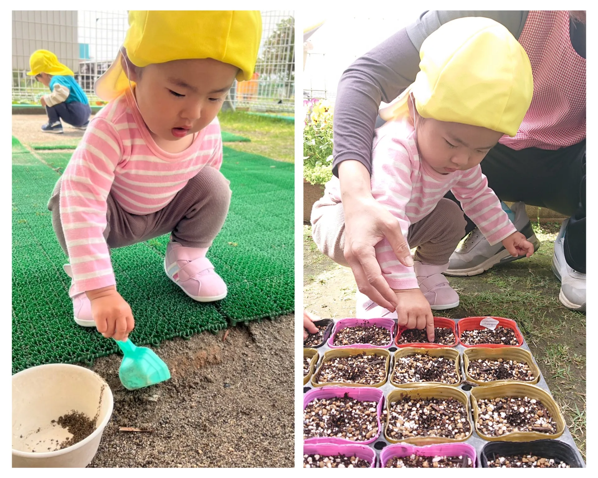 ひまわりの種まき(りんご組、いちご組)