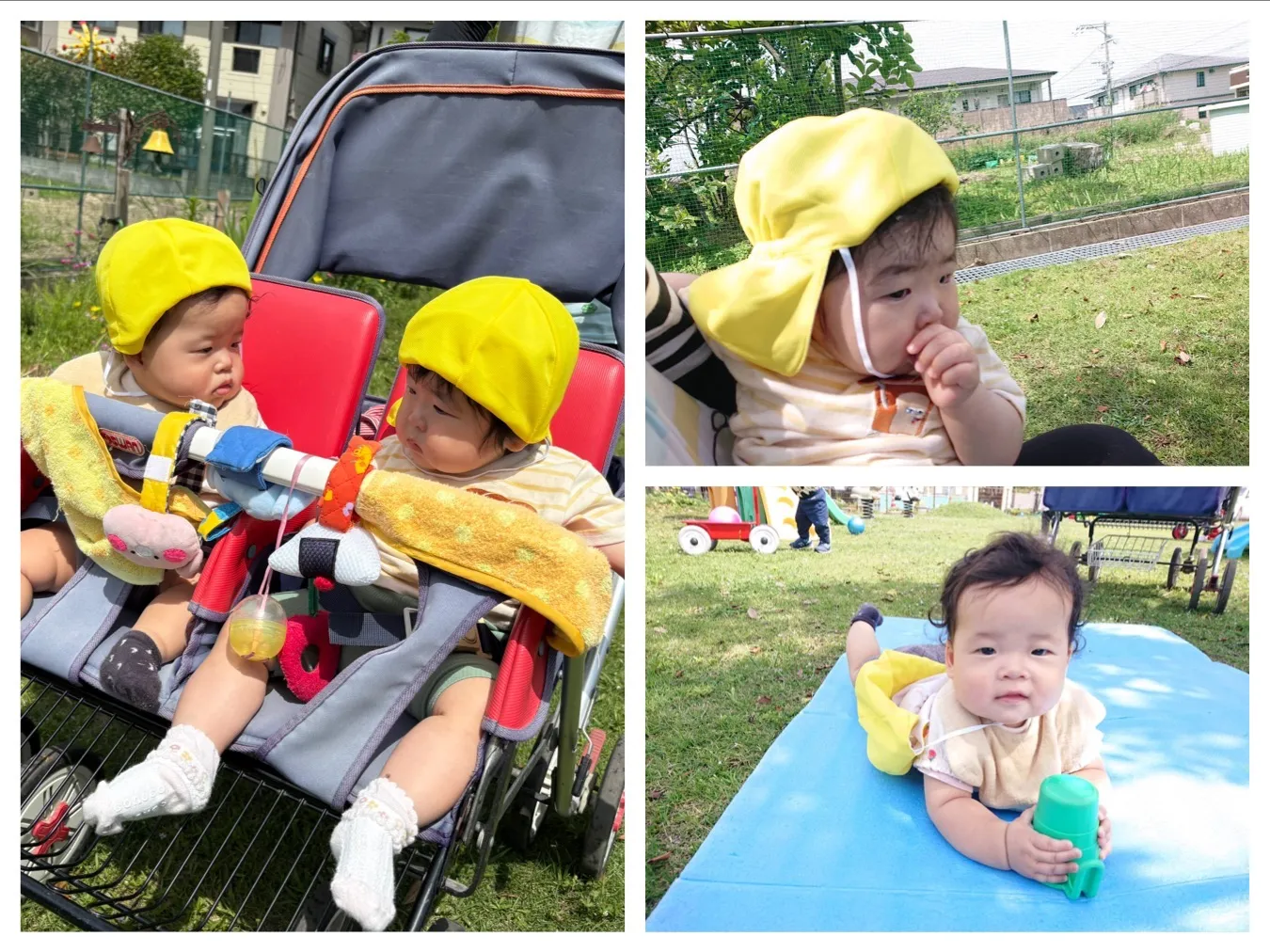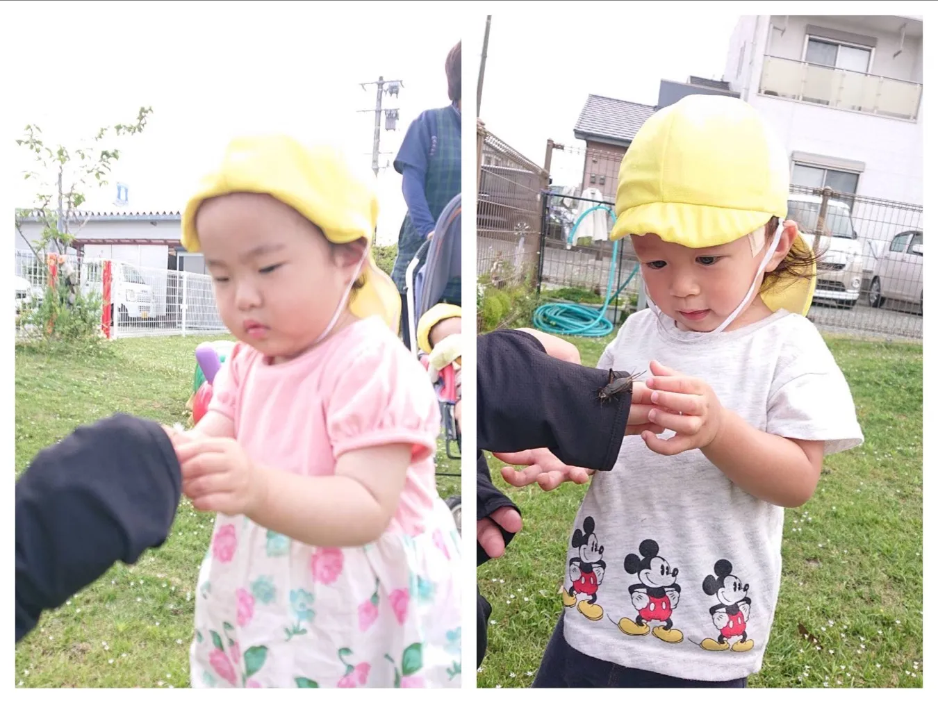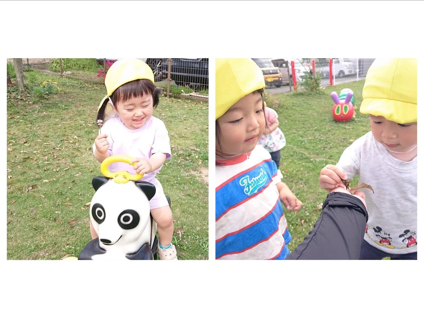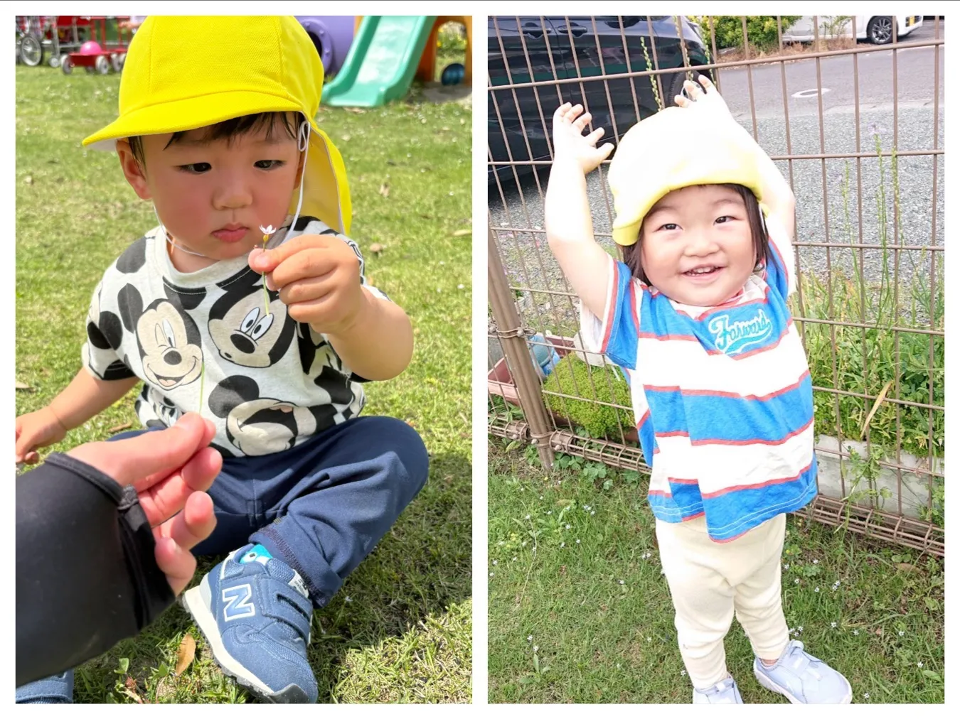 今日は広場で遊びました。ぽかぽかの日差しの中、ボールやリンリントロッコで遊んだり、先生に「ちょうちょがいたよ」と教えてくれて先生と一緒に捕まえようと頑張っているお友達もいました。