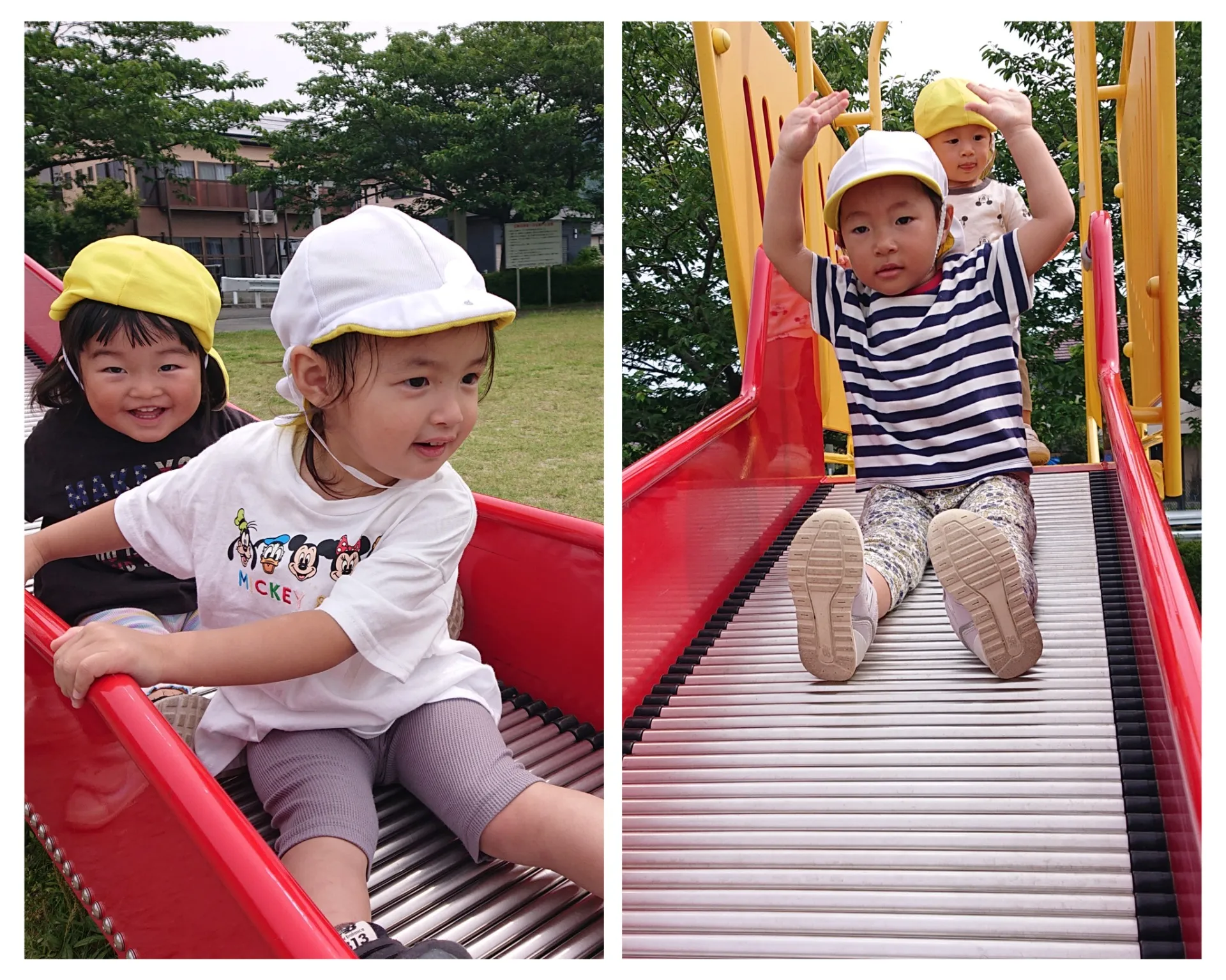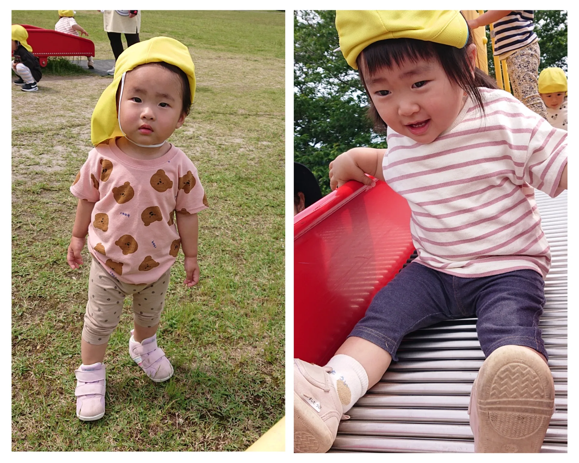 今日は、香田公園に行きました。大好きなローラー滑り台をすべったり、お友だちや保育士と追いかけっこをしたりと、元気いっぱい楽しんでいました♪赤ちゃん達も、心地よい風に吹かれて日向ぼっこが気持ち良さそうでした![]()
