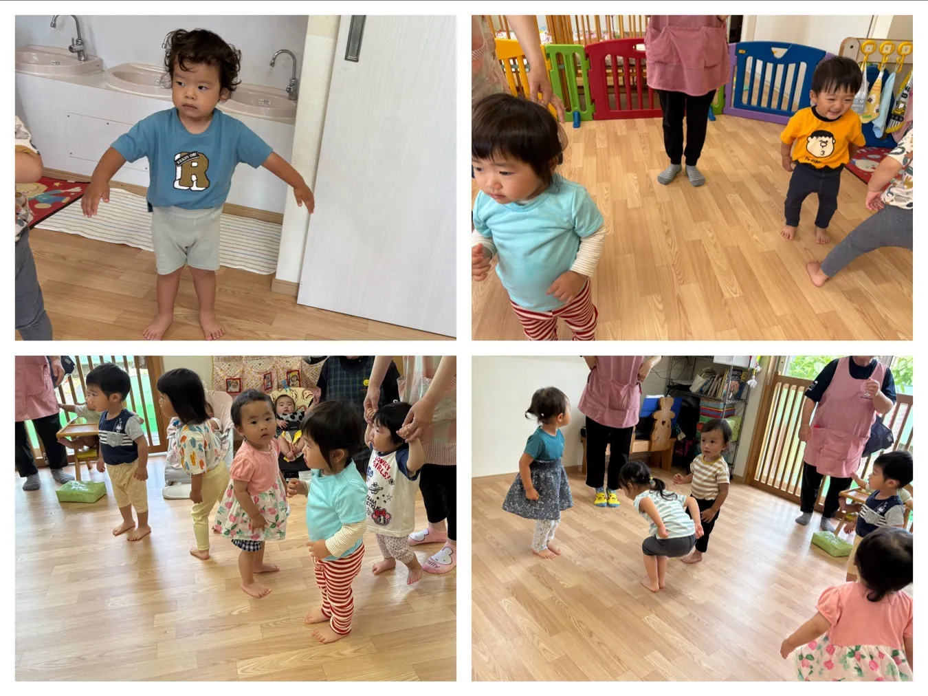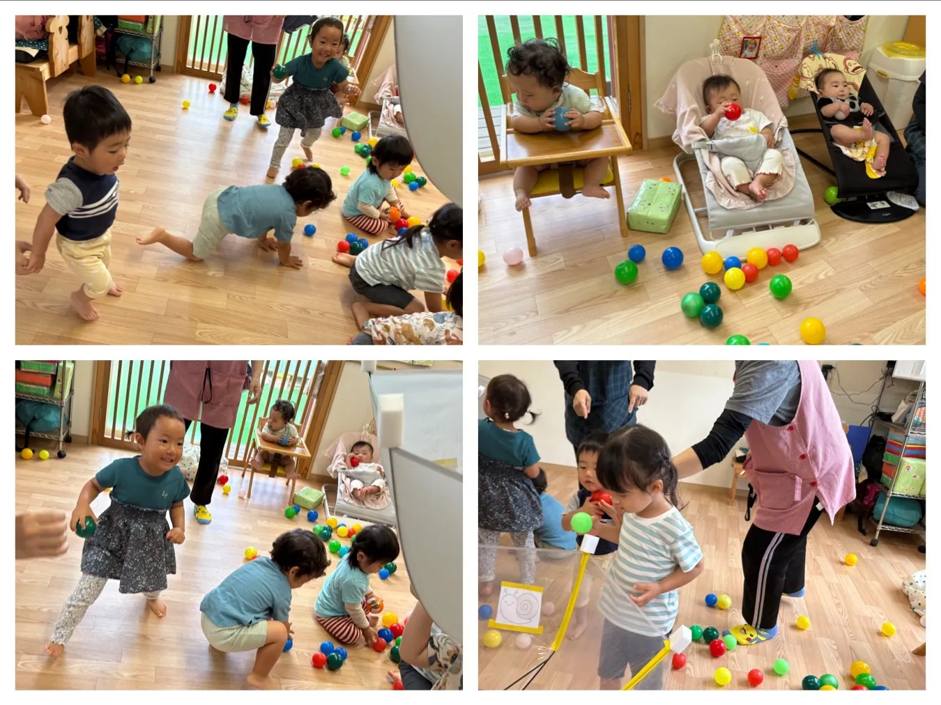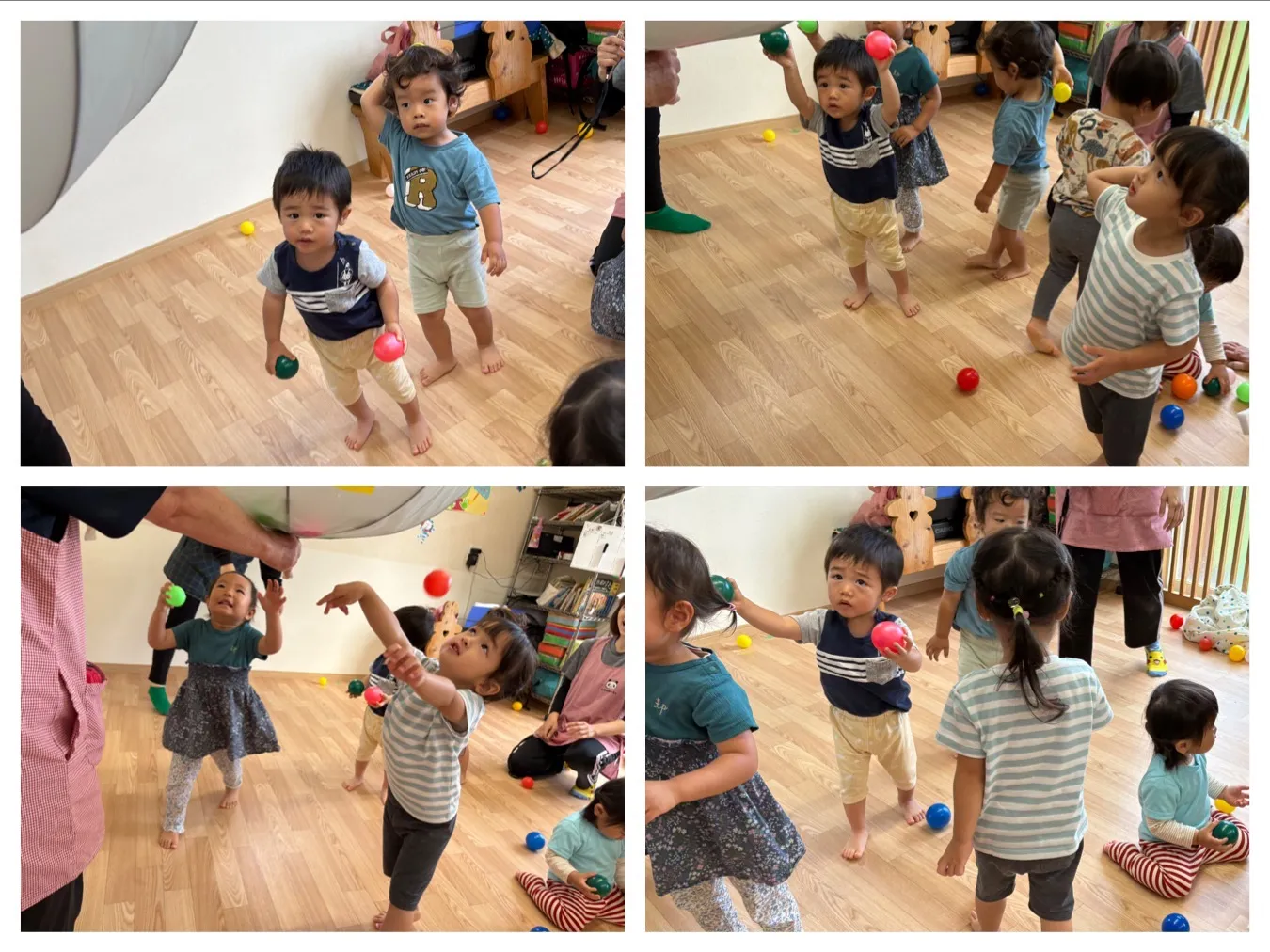 今日は5月生まれのお誕生会がありました。いちご組さんのお誕生児さんをみんなで歌やインタビューでお祝いしました。職員の出し物は「うんどうかいごっこ」ということで、KARADA体操や玉入れ競争を楽しみました。いちご組さんVSりんご組さんの玉入れ競争はとっても大盛り上がりで子どもたちも喜んでいました。
