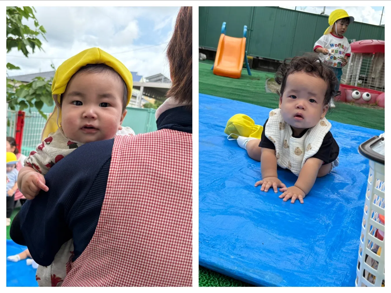 今日は、いちご組さん側のお庭で遊びました。滑り台や砂場遊び、、自分の好きな遊びを何度も繰り返して遊ぶいちご組さんです。りんご組さんの「泥んこあそび」も見学させてもらって、今度の金曜日の泥んこあそびが楽しみになりました。