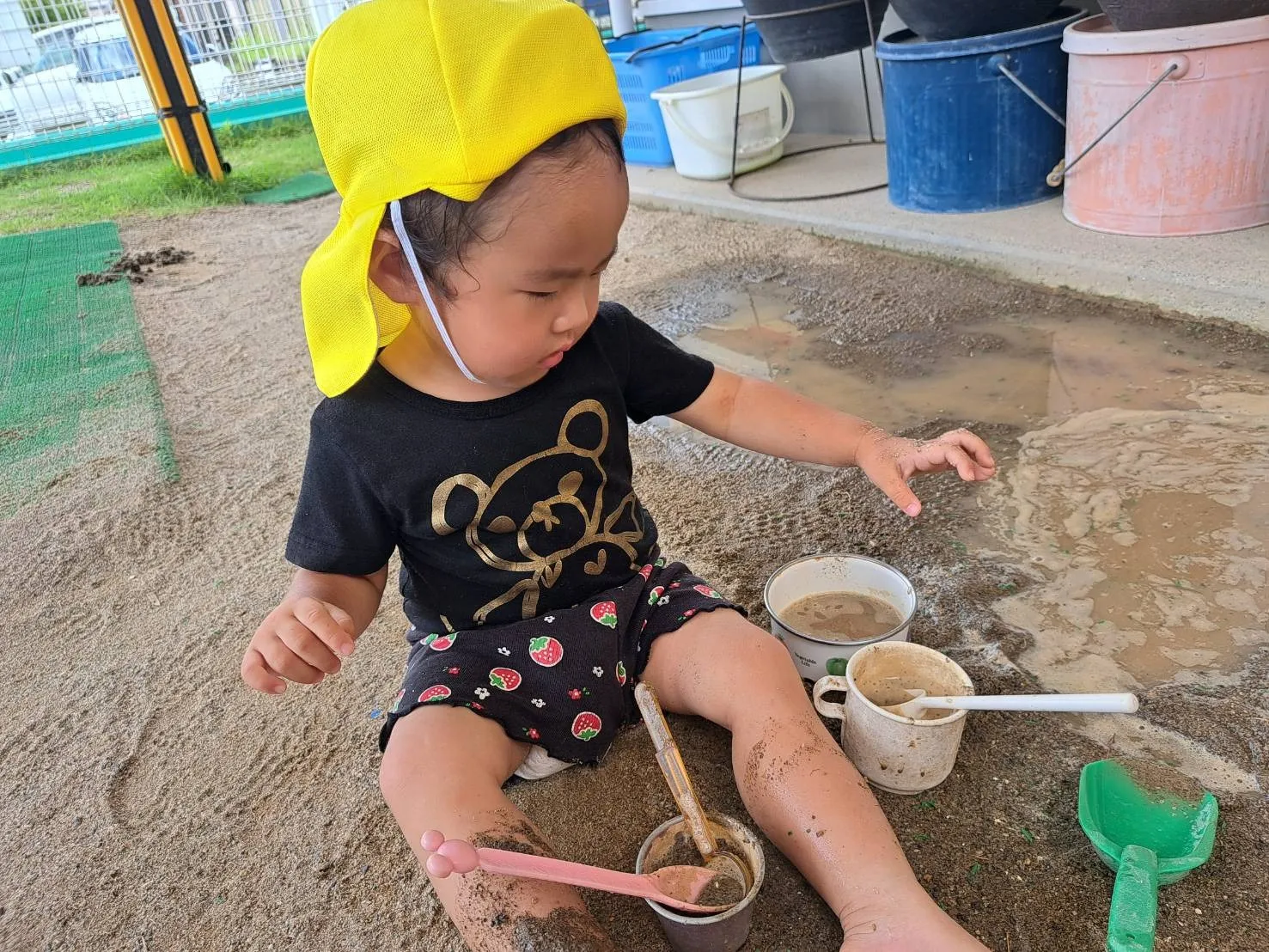 トマトの収穫、泥んこ遊び(いちご組)