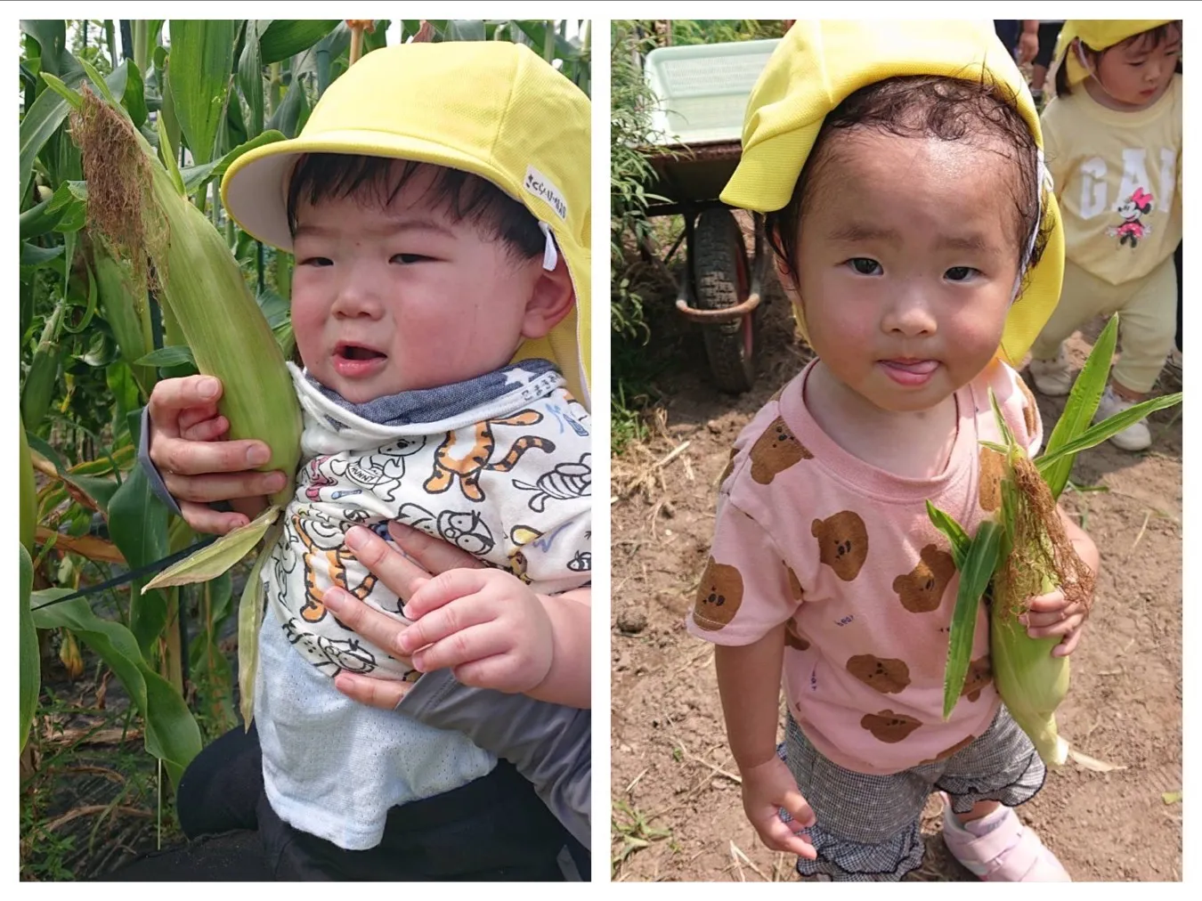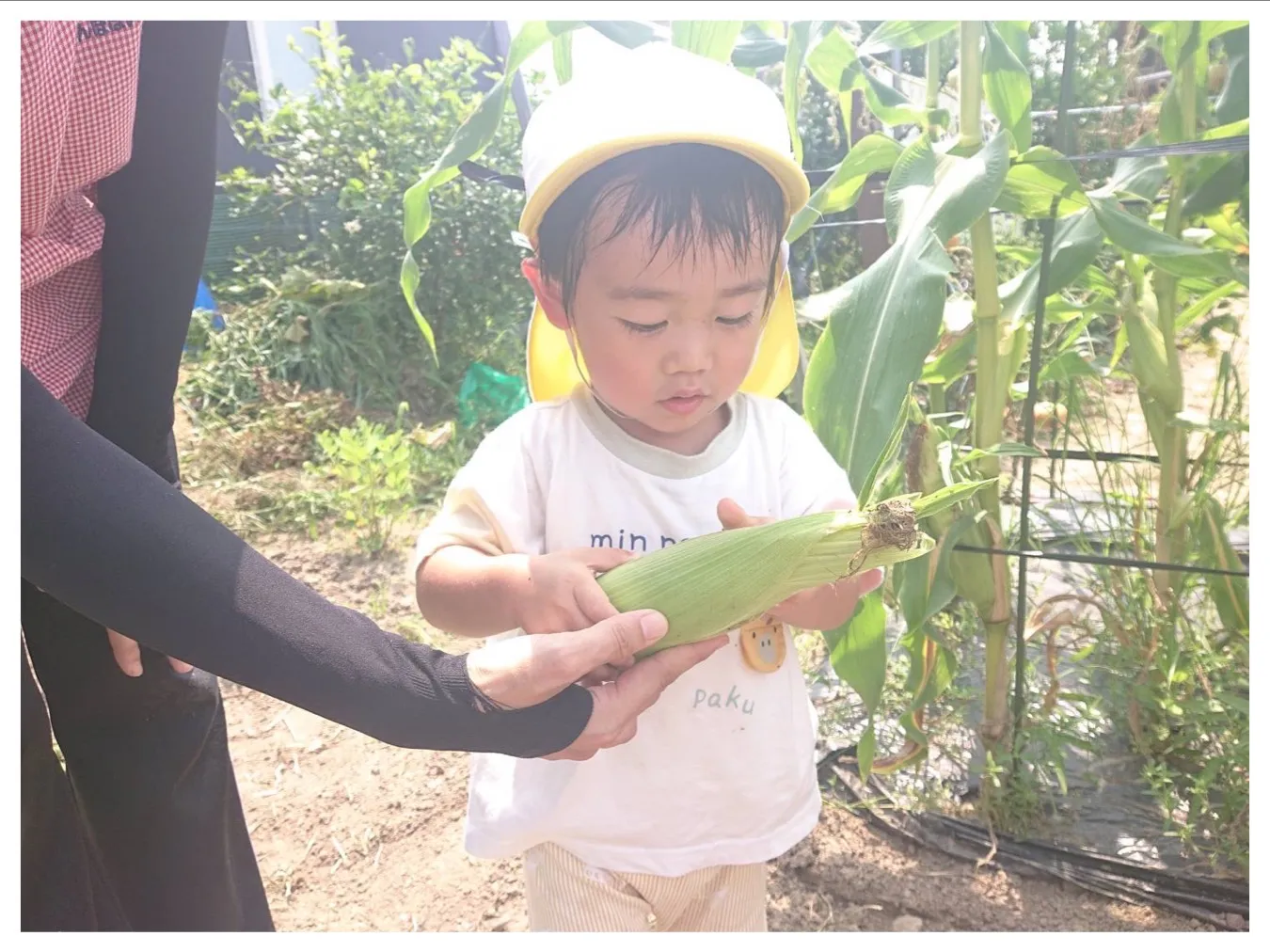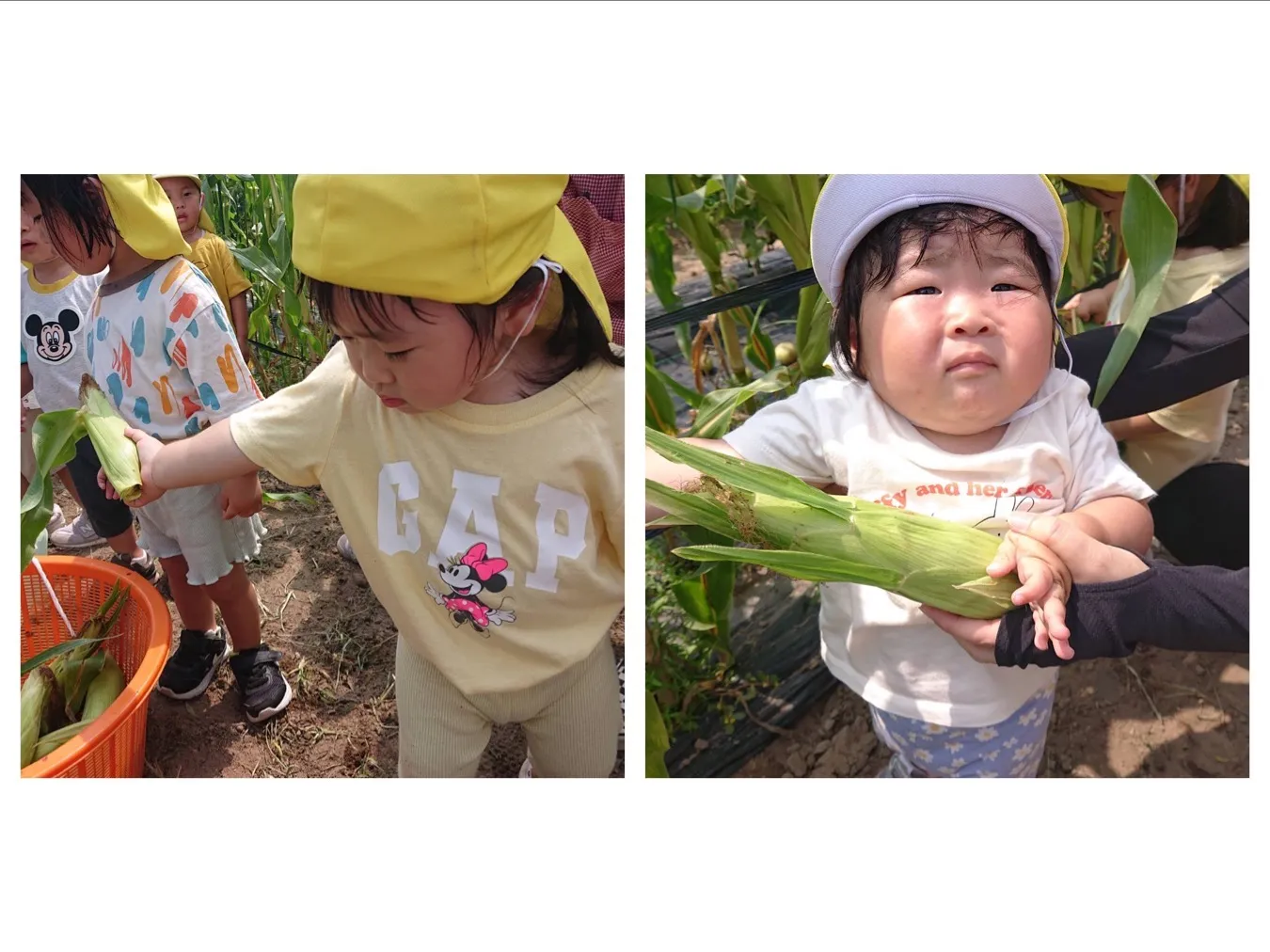 今日は6月生まれの誕生会でした。誕生児さんの好きなものをたくさん聞けて子どもたちもお誕生児さんも嬉しそうでした。その後はにこにこ菜園のトウモロコシ収穫をしました。大きなトウモロコシを一生懸命引っ張って、、大収穫!!おやつの時間にいただきました。ご家庭にもお持ち帰る予定です!