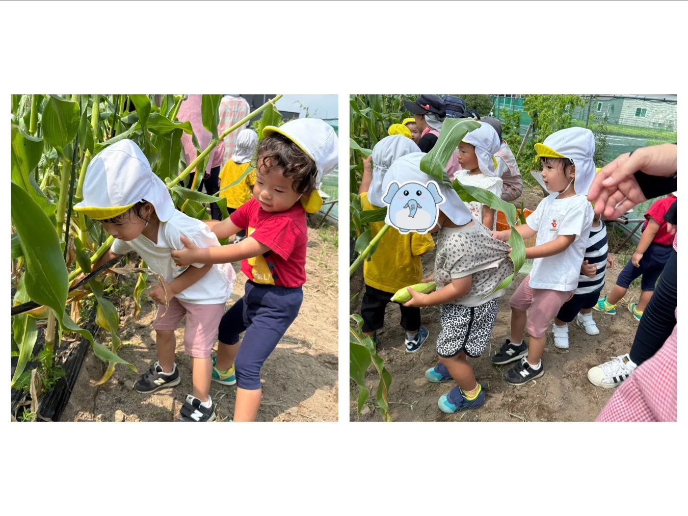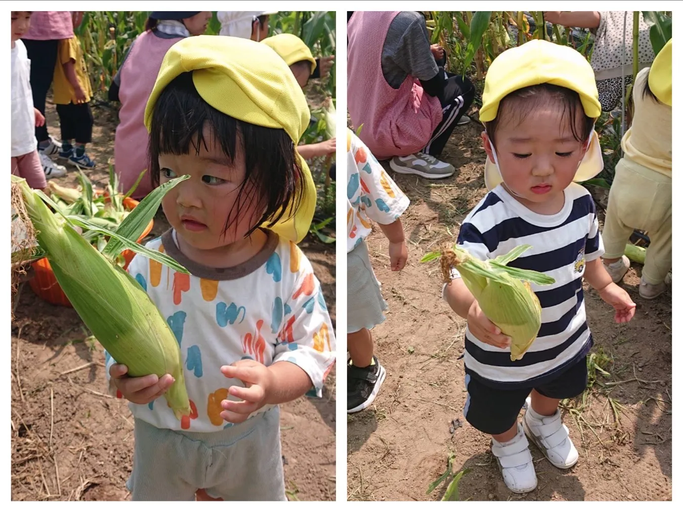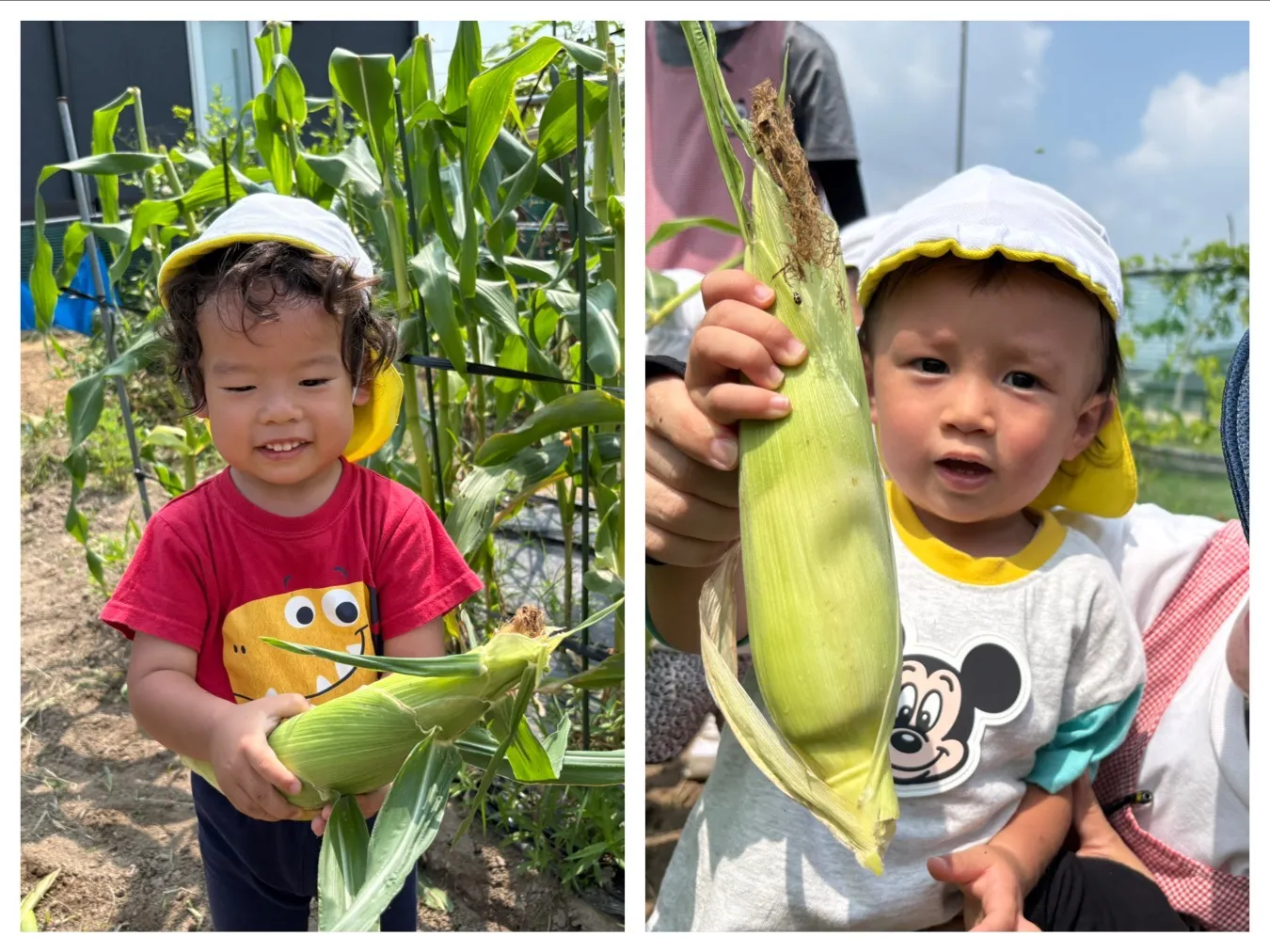 今日は6月生まれの誕生会でした。誕生児さんの好きなものをたくさん聞けて子どもたちもお誕生児さんも嬉しそうでした。その後はにこにこ菜園のトウモロコシ収穫をしました。大きなトウモロコシを一生懸命引っ張って、、大収穫!!おやつの時間にいただきました。ご家庭にもお持ち帰る予定です!