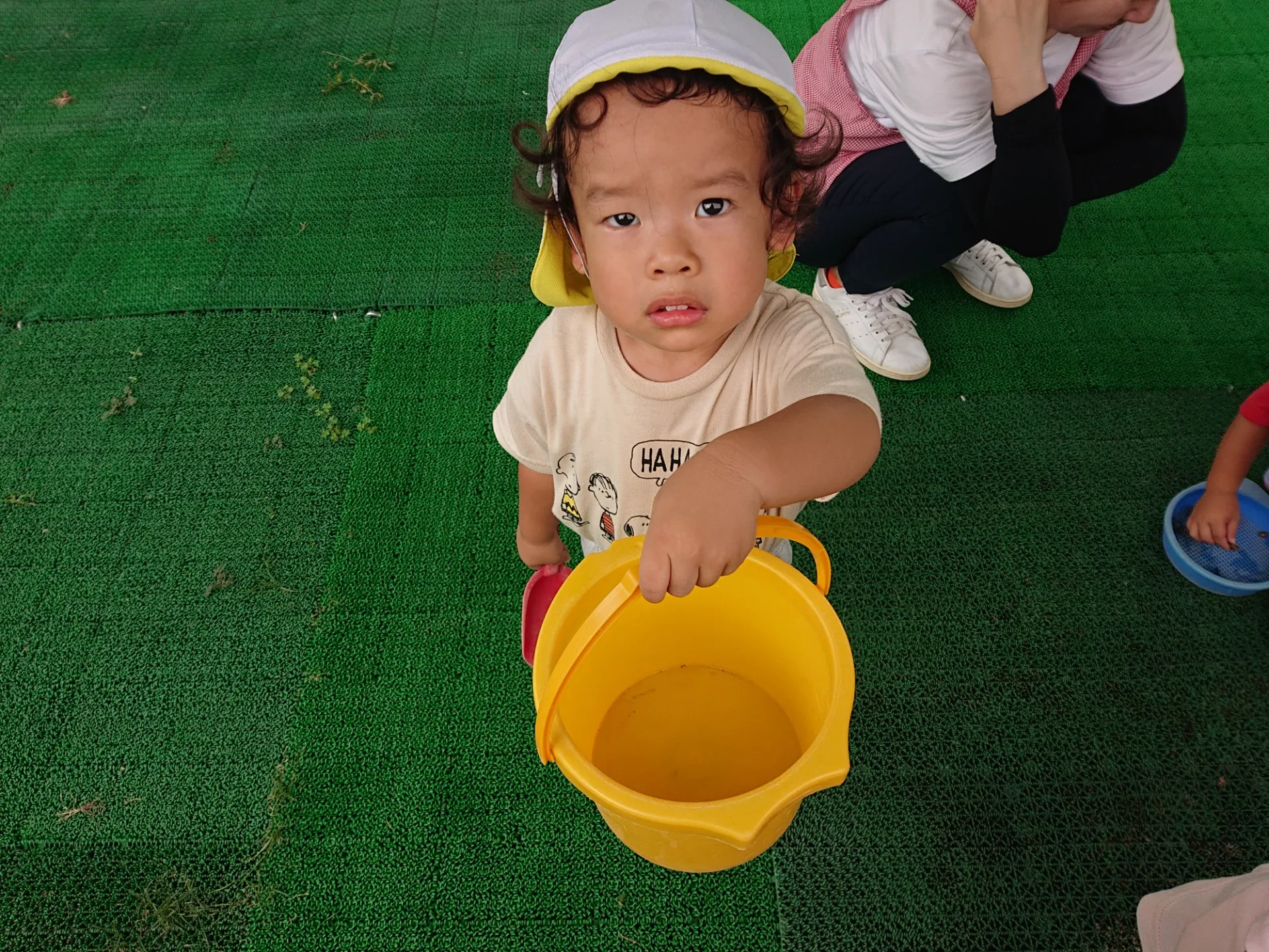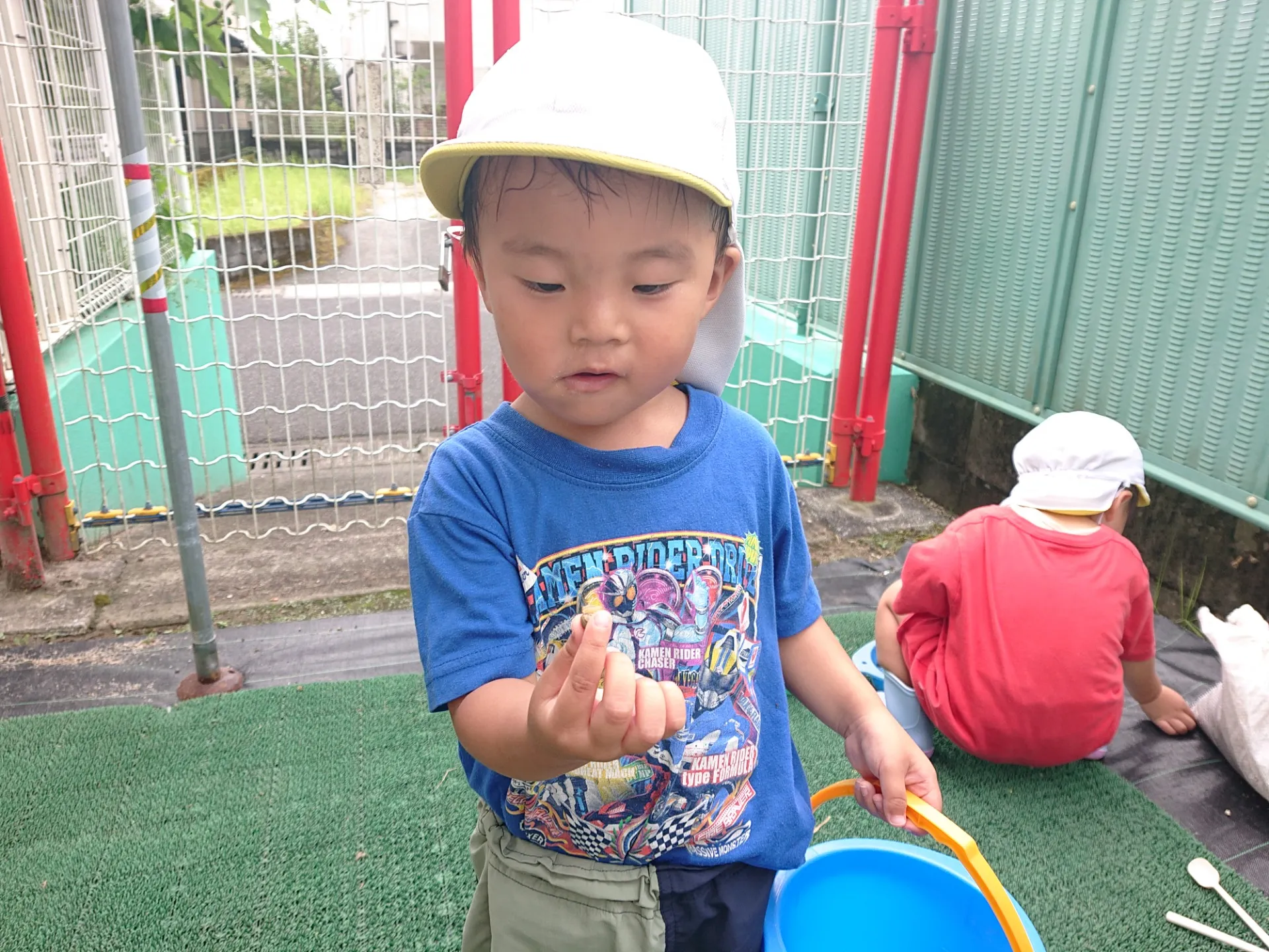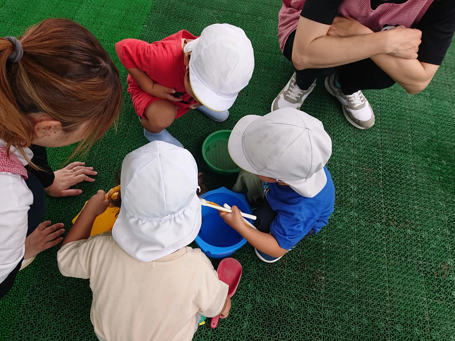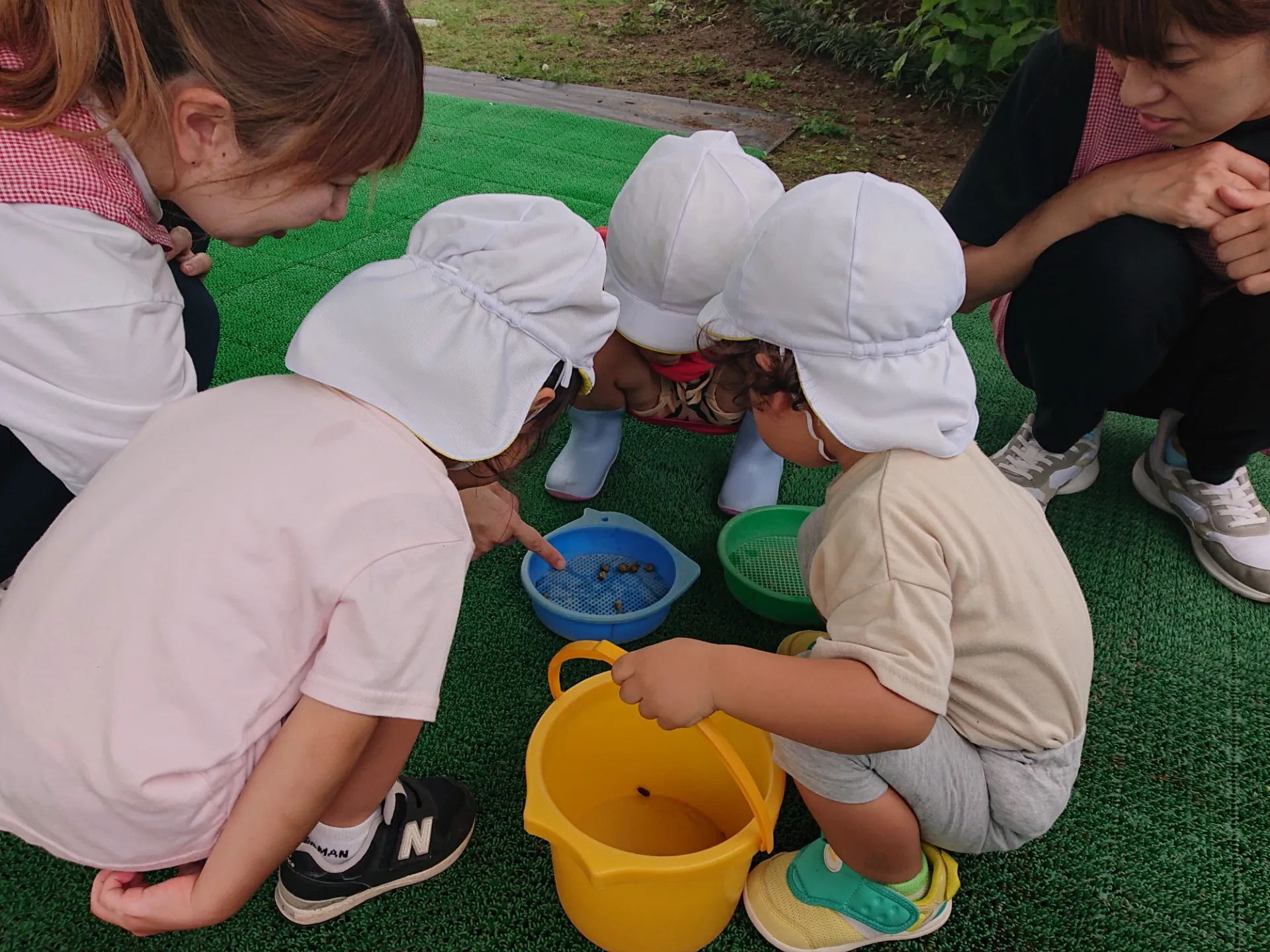 その後お庭に出てみると、たくさんのカタツムリを発見🐌お皿やバケツに入れて観察しました。