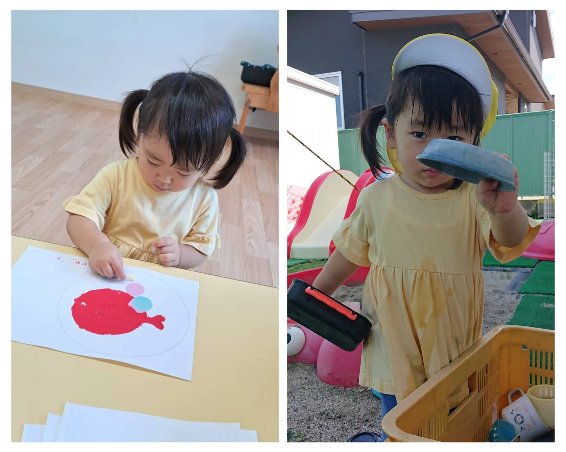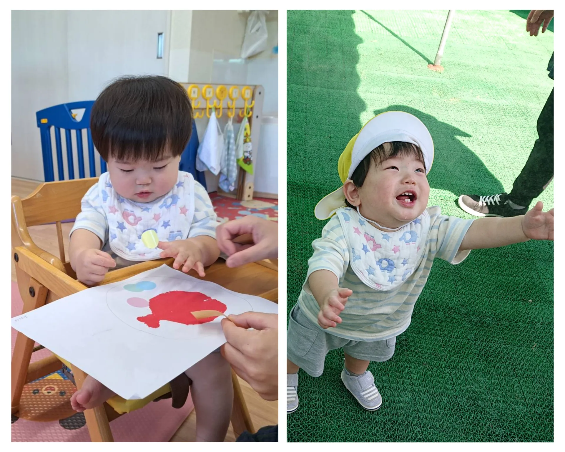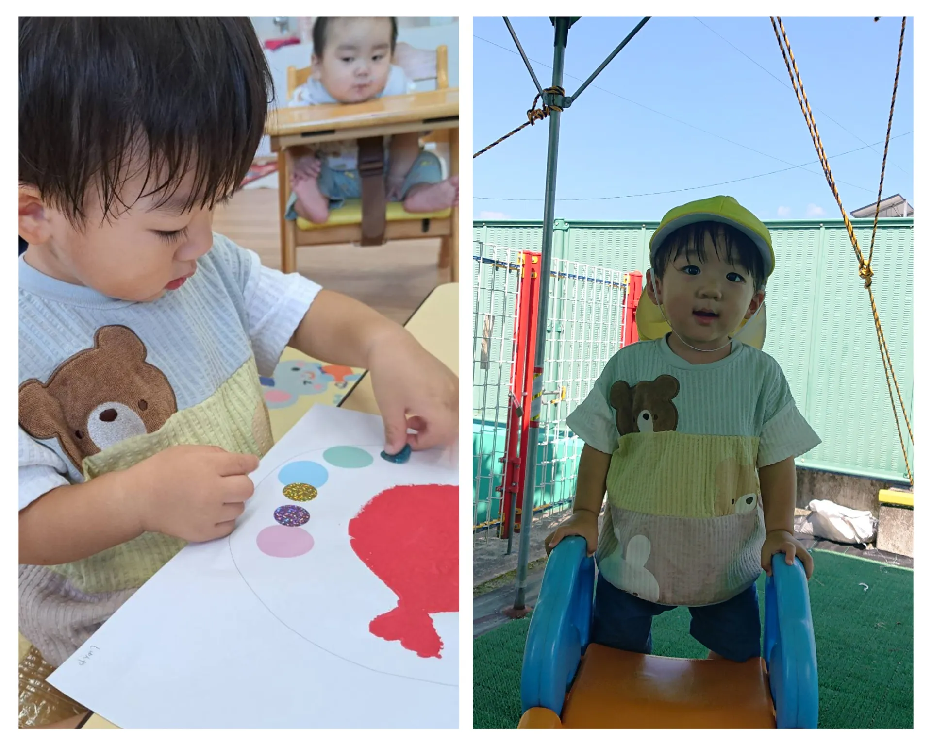 シール貼りをしよう、お庭で遊ぼう(いちご組)