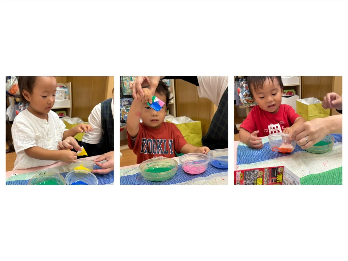 今日は、8月末に予定しているお店屋さんごっこの商品づくりをしました。シール貼りやスタンピング・にじみ絵など、たくさんの商品作りを頑張ってくれたりんご組さんです✨