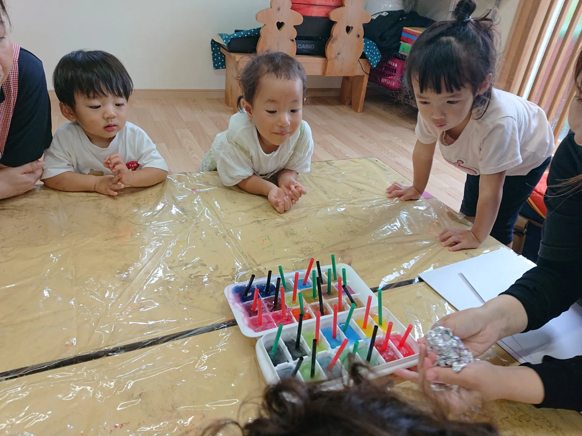 氷絵の具で遊ぼう(りんご組、いちご組)