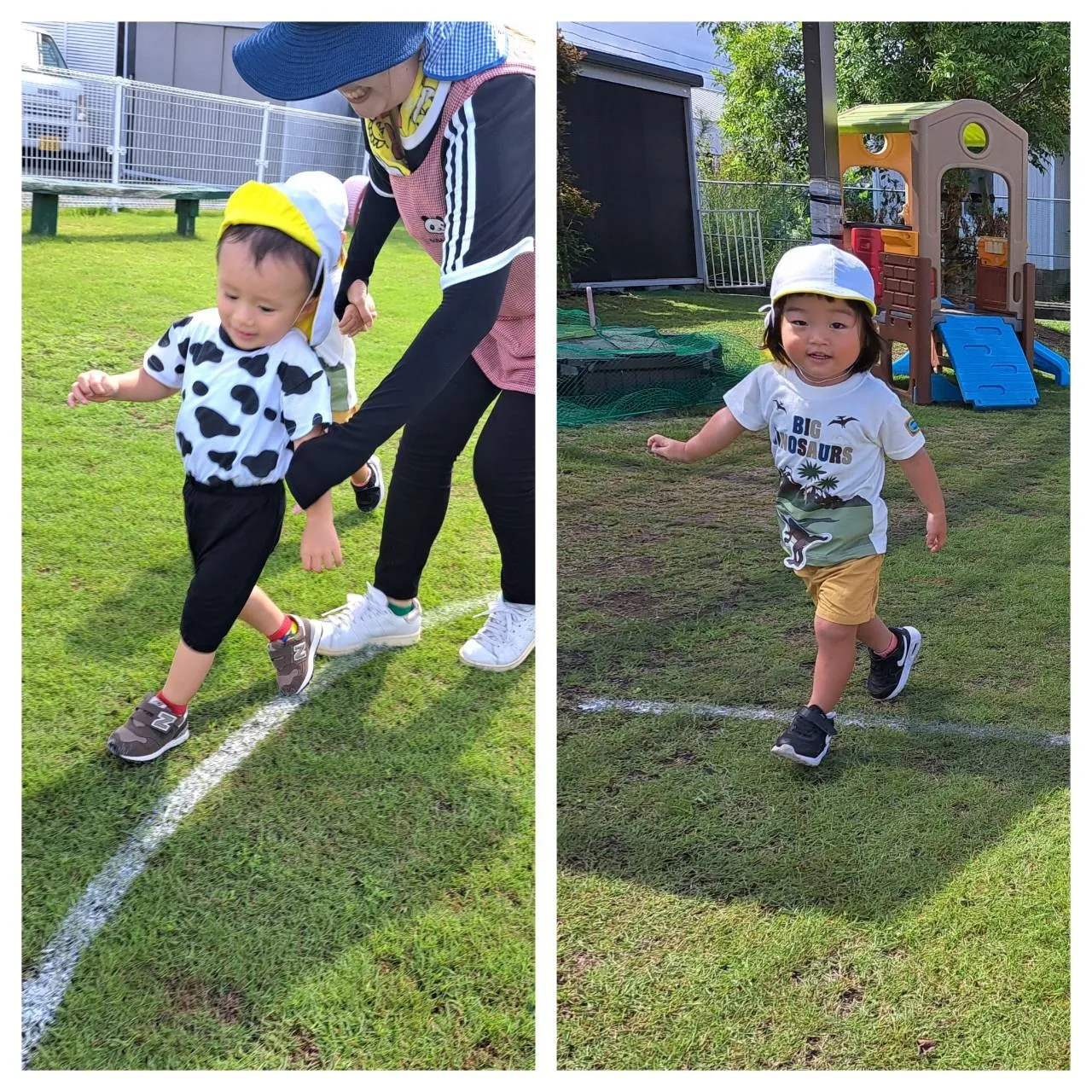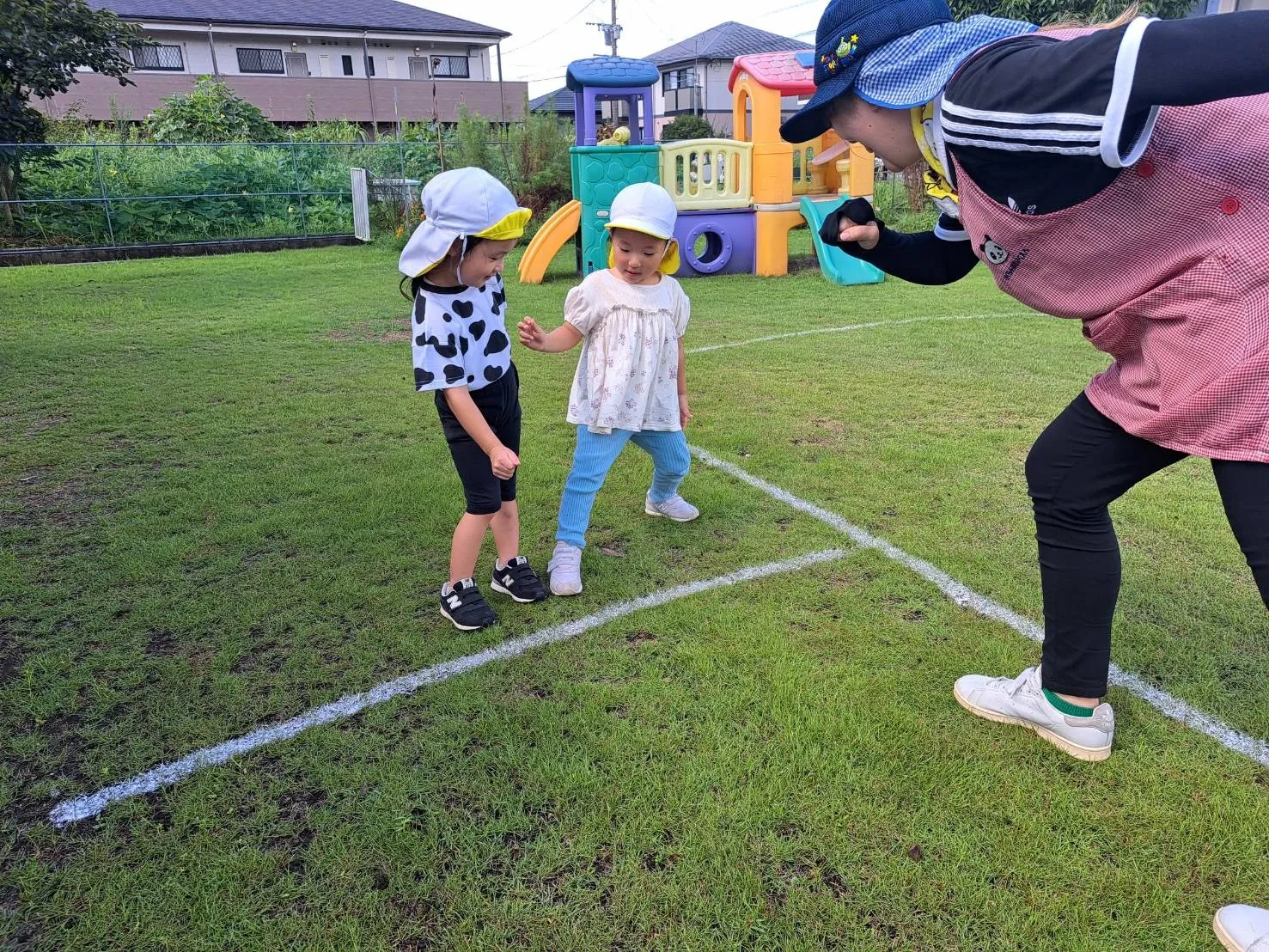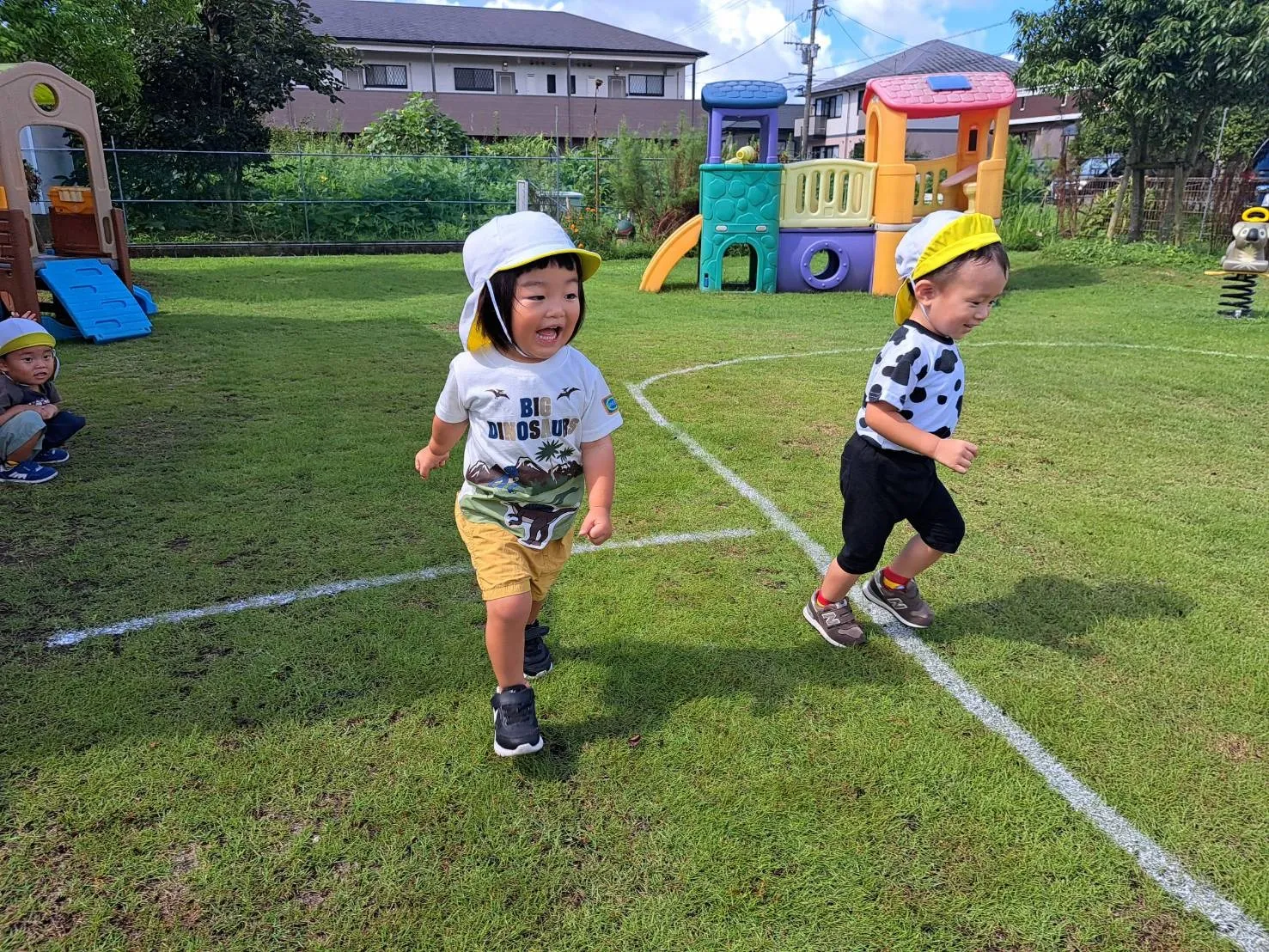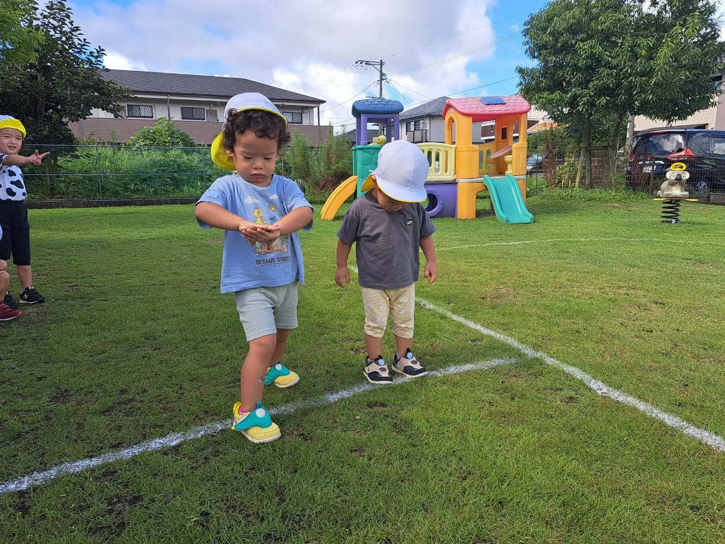 今日は、広場でかけっこ遊びをしました。スタートの合図で上手にスタートするりんご組さん。白線の外側を上手に走るお友達もいれば、線の中を自由に走るお友達もいて、楽しいかけっこ遊びとなりました♪少しずつかけっこのルールを知ることができたらいいなと思います。