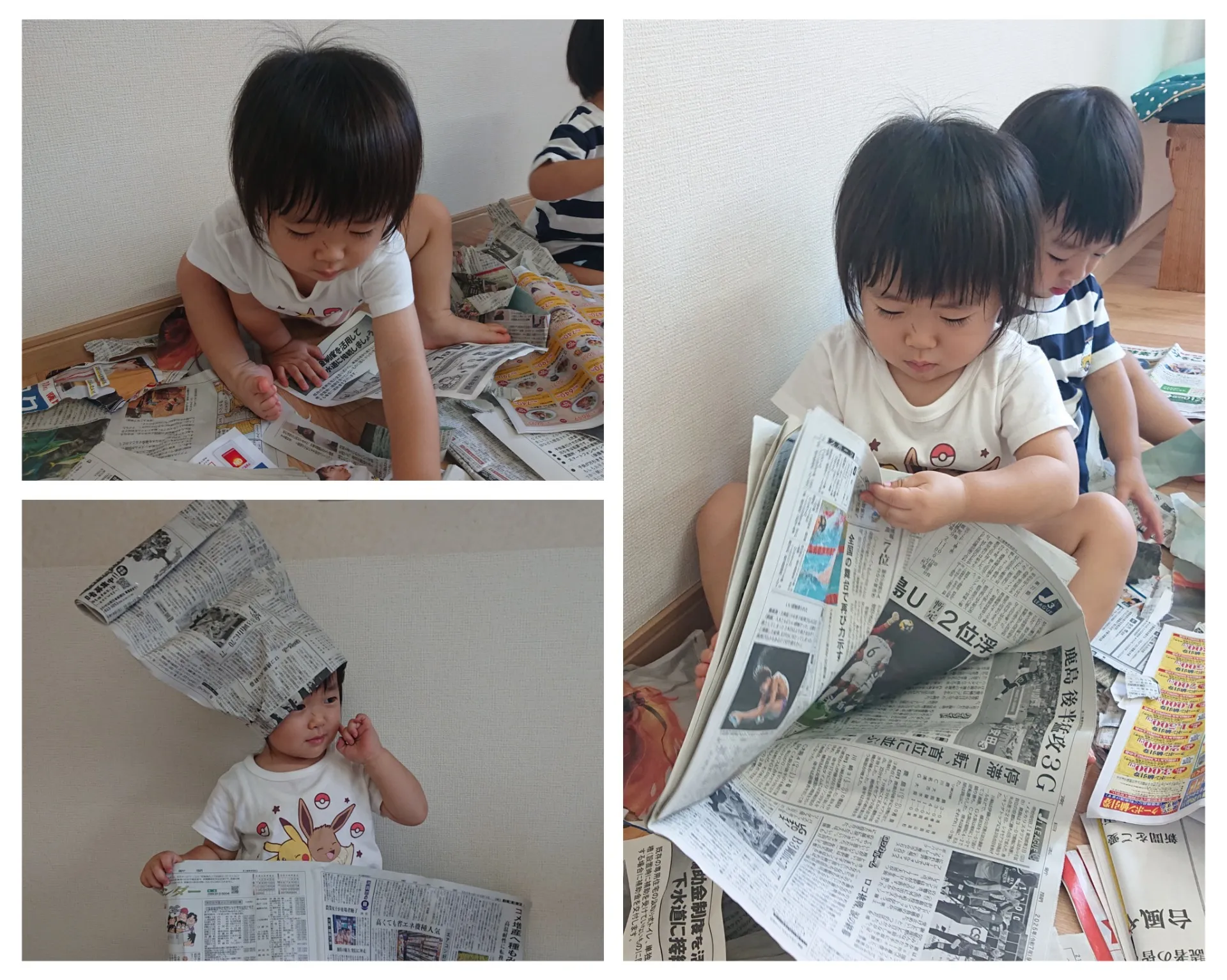 新聞紙あそび(いちご組)