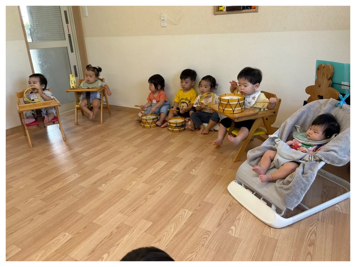 今日は9月の身体測定と誕生会に参加しました。誕生児さんはりんご組さんのお兄さんたち、、自分で何歳になったか教えてくれることが出来て、とてもかっこよかったです。クラスの出し物はお遊戯と合奏でした。ちょっぴり緊張しながらも立派に発表が出来ましたよ。その後も大型絵本を見て楽しみました。