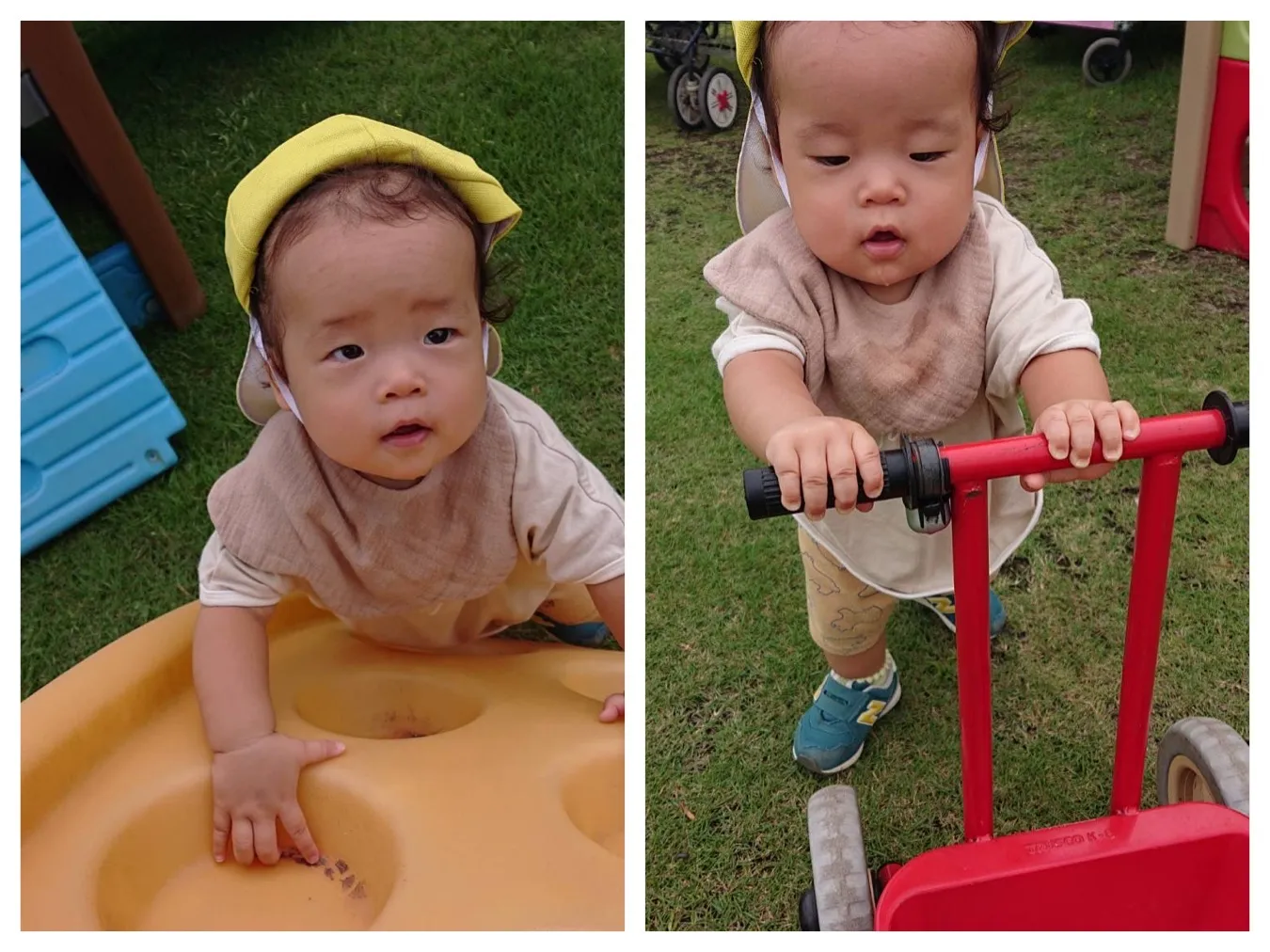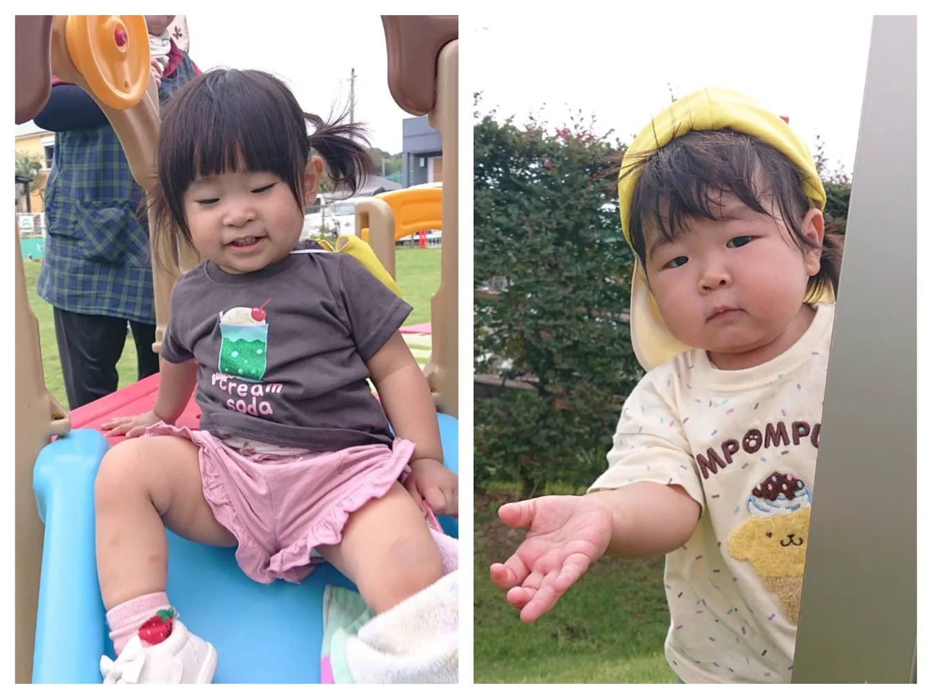 リンリントロッコを上手に押せるようになっている子、築山をスイスイ登れるようになった子、、、。涼しくなり外遊びが出来て身体を思い切り動かせて嬉しそうな子ども達です。
