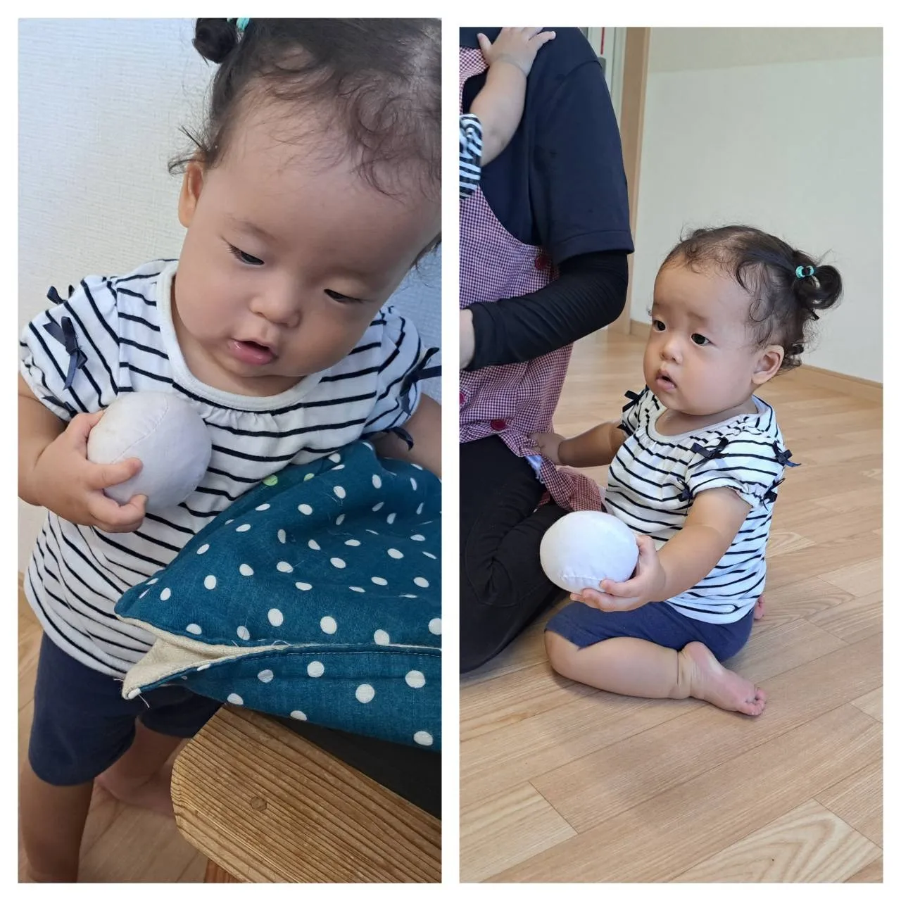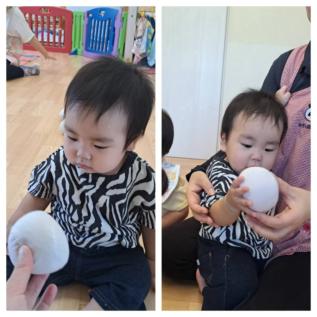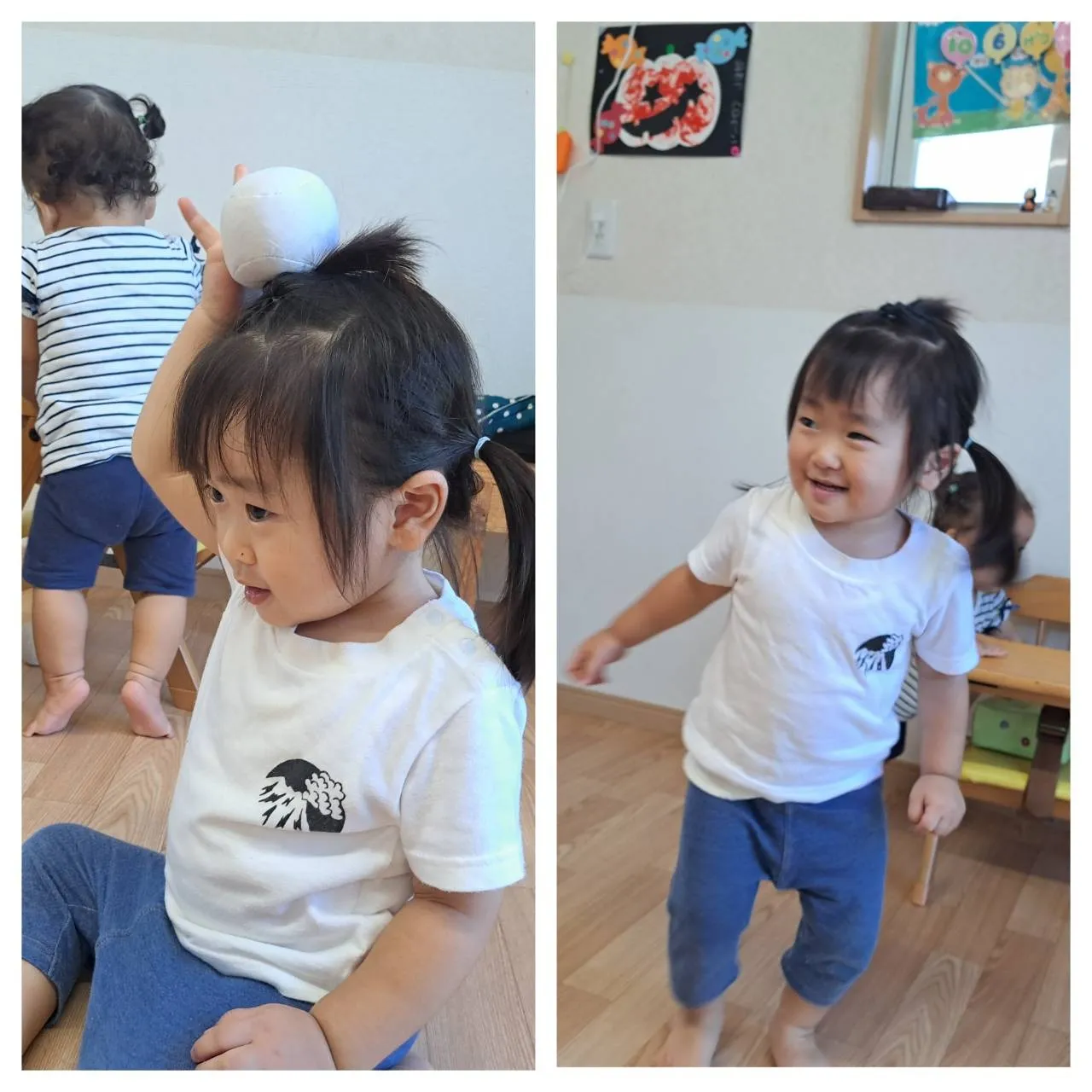今日は、お部屋で玉入れ遊びをしました。お手玉を上手に箱の中に入れることができたいちご組さん♪その後は、お手玉を頭にのせたり服の中に入れて隠して遊んだりと、いろいろな遊び方で楽しめていました。