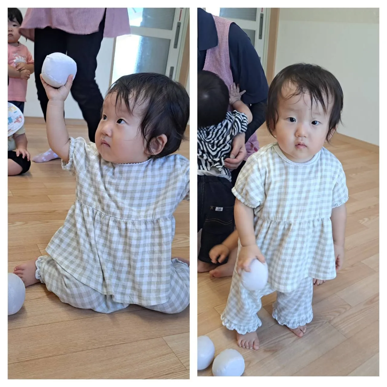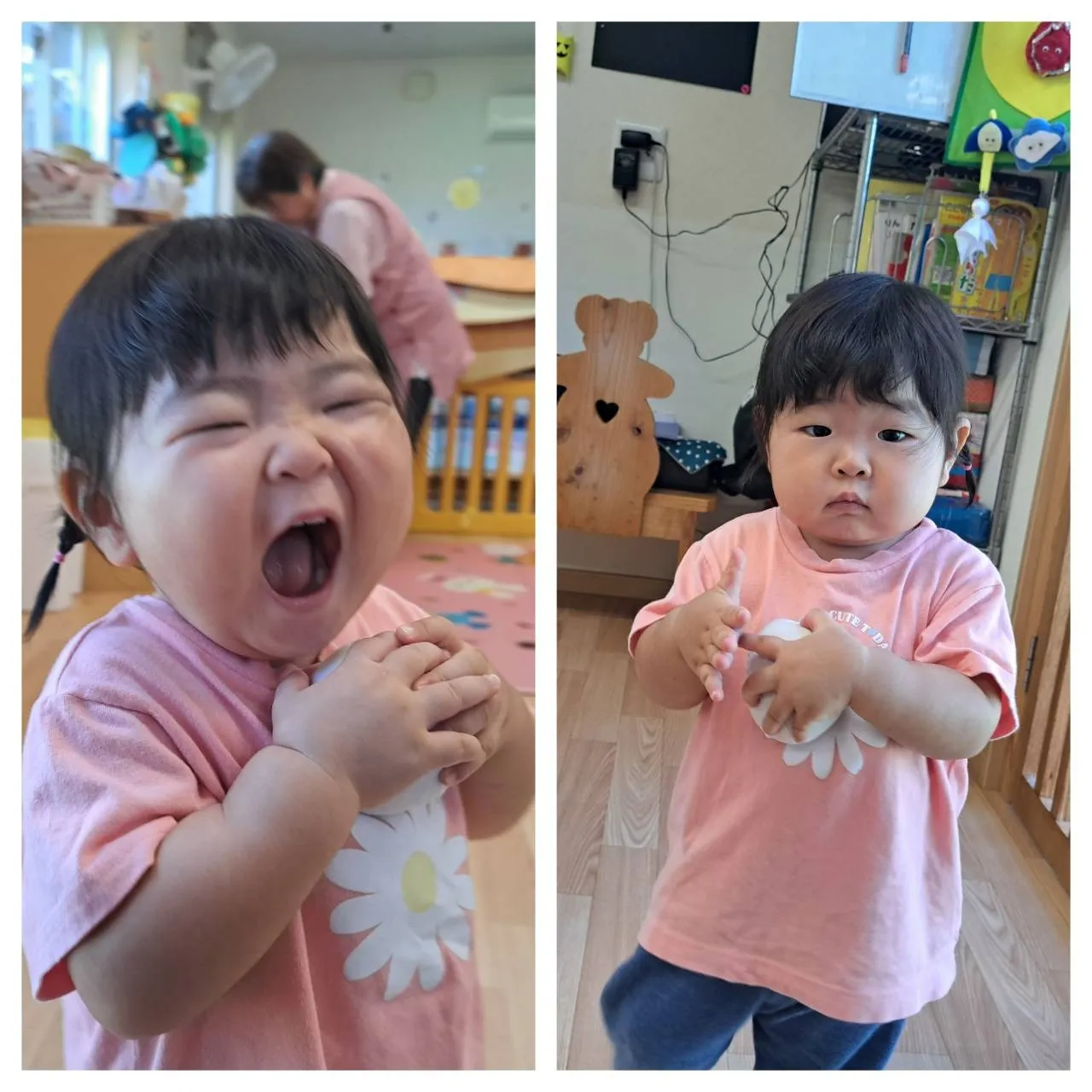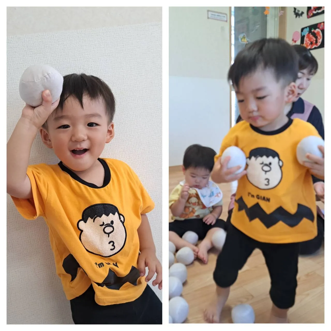 今日は、お部屋で玉入れ遊びをしました。お手玉を上手に箱の中に入れることができたいちご組さん♪その後は、お手玉を頭にのせたり服の中に入れて隠して遊んだりと、いろいろな遊び方で楽しめていました。