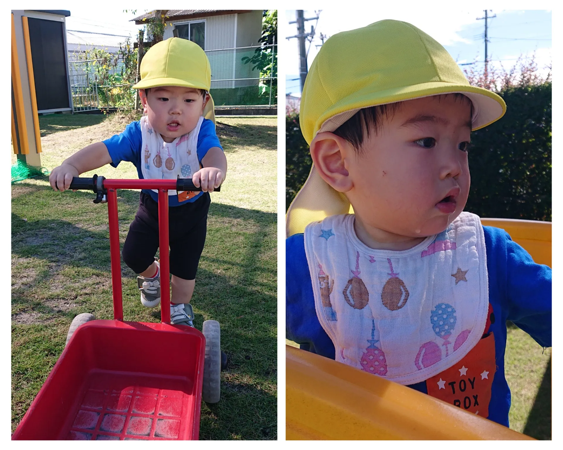 残暑の厳しい日が続いていますが、子ども達は元気いっぱいに広場で遊びました。こまめな水分補給をしたりお着替えをしてさっぱりした後は、給食もモリモリ食べていました。
