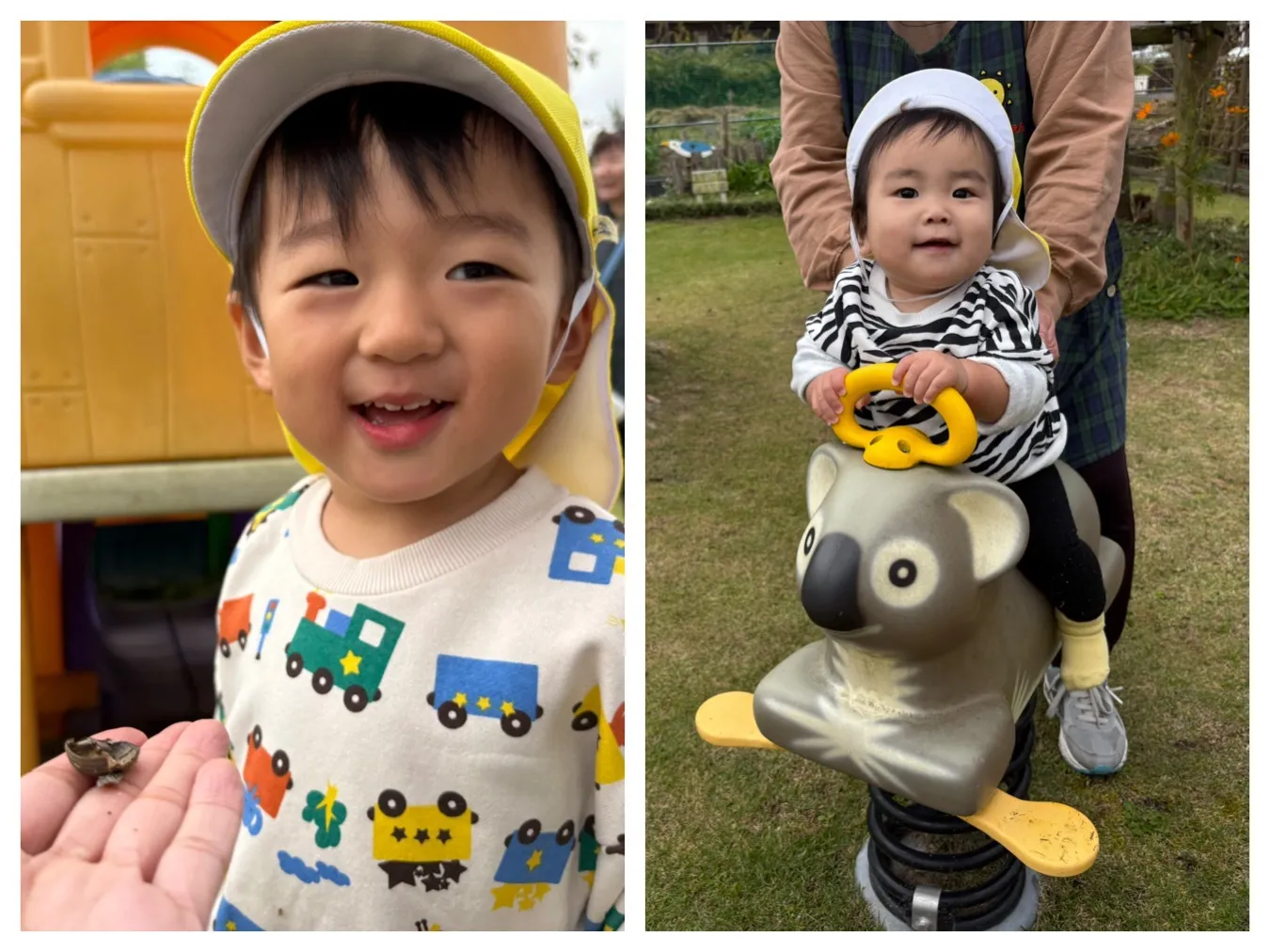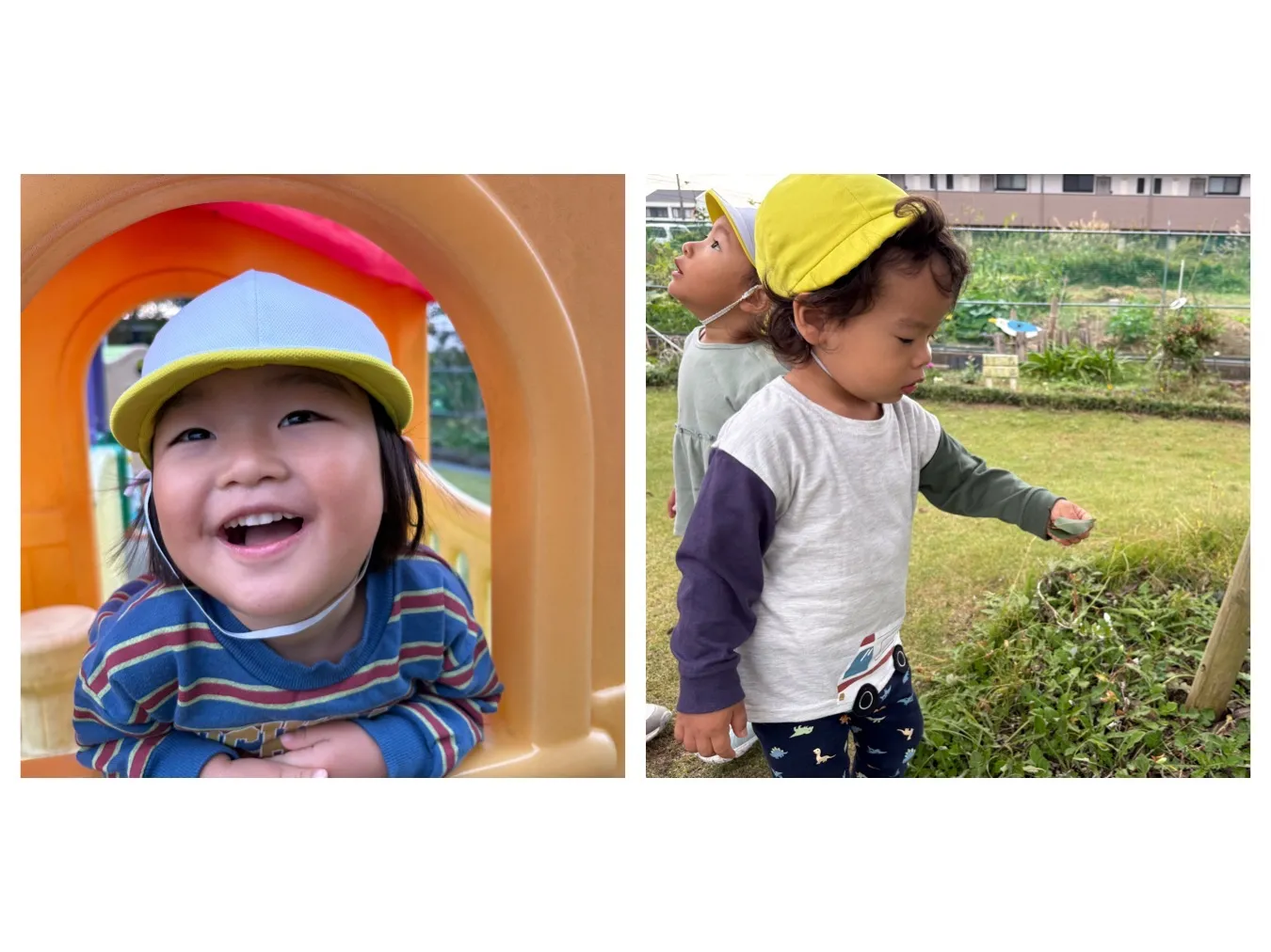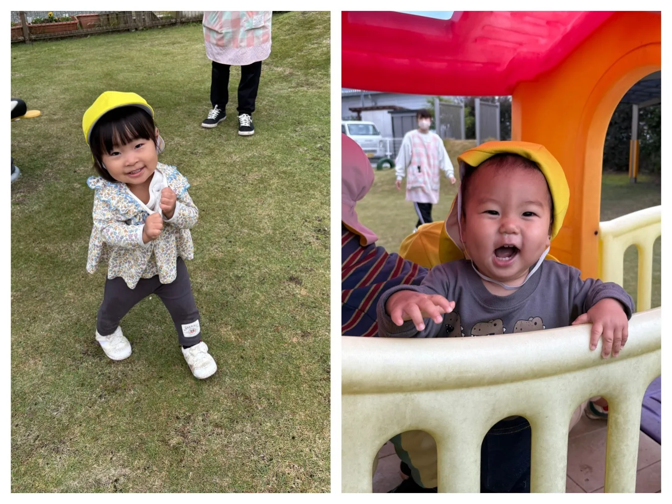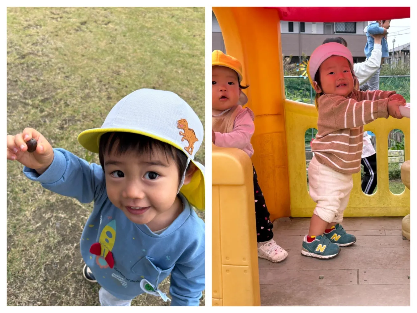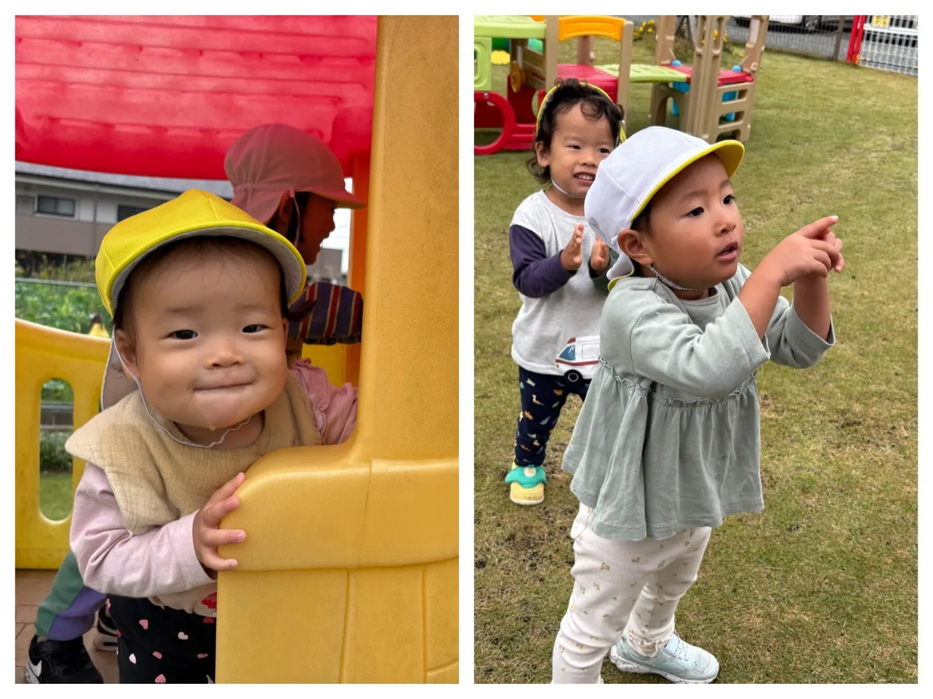 今日は広場遊びを楽しみました。先生との追いかけっこを楽しむりんご組さんや大型遊具や築山などいろんな場所に行って自分で移動できることが嬉しいいちご組さんの姿が見ることが出来ました。