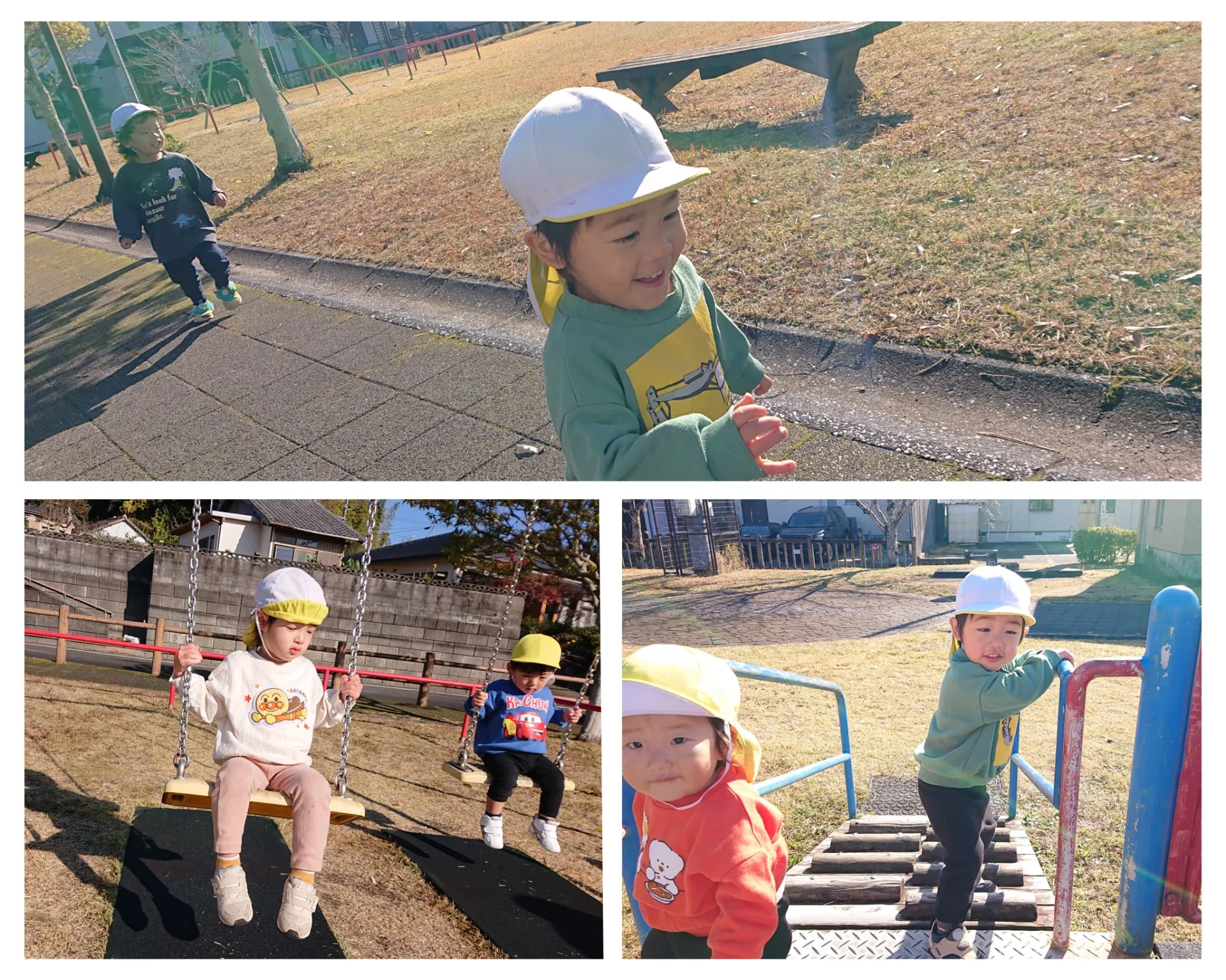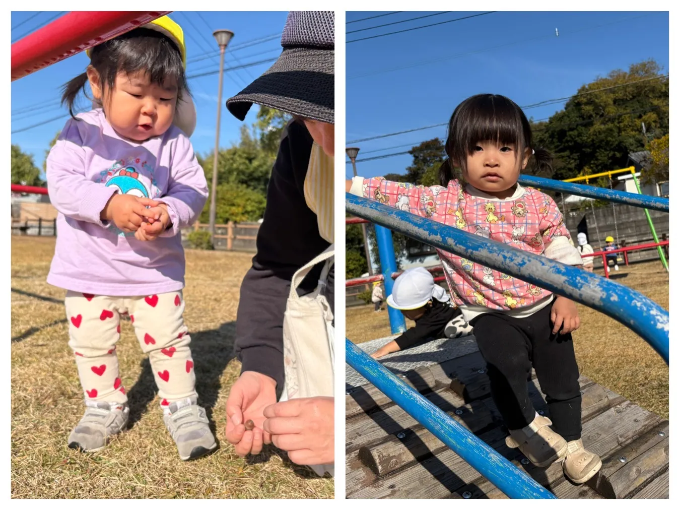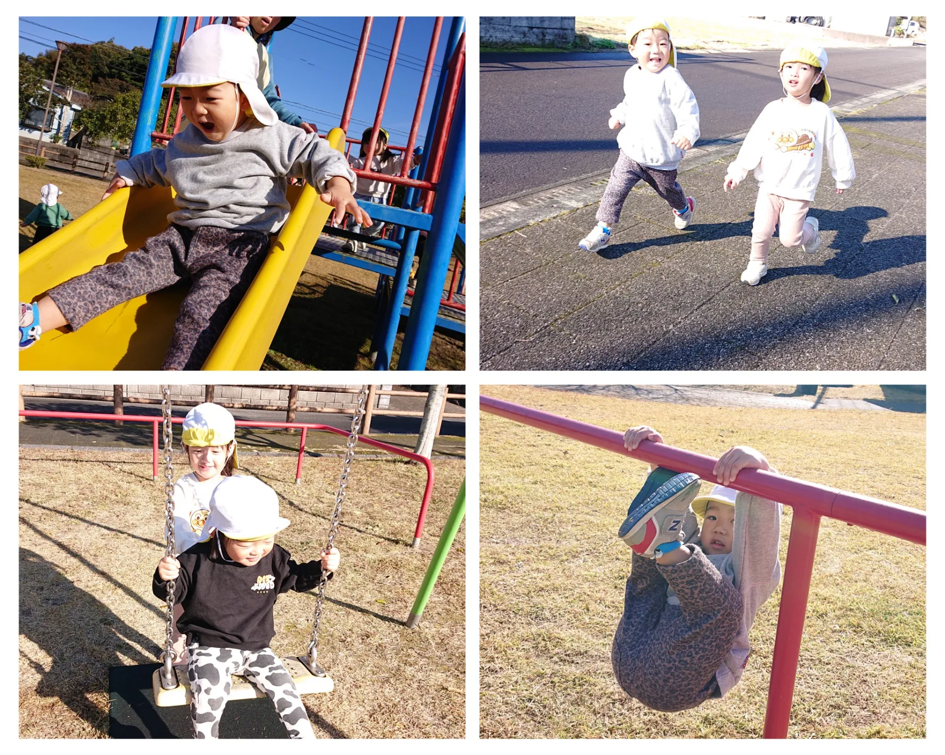 今日は、山田島公園に行きました。久しぶりのお散歩となって子どもたちは大喜びで、公園中をマラソンしたり、どんぐりを拾ったり、滑り台を楽しんだりしました。