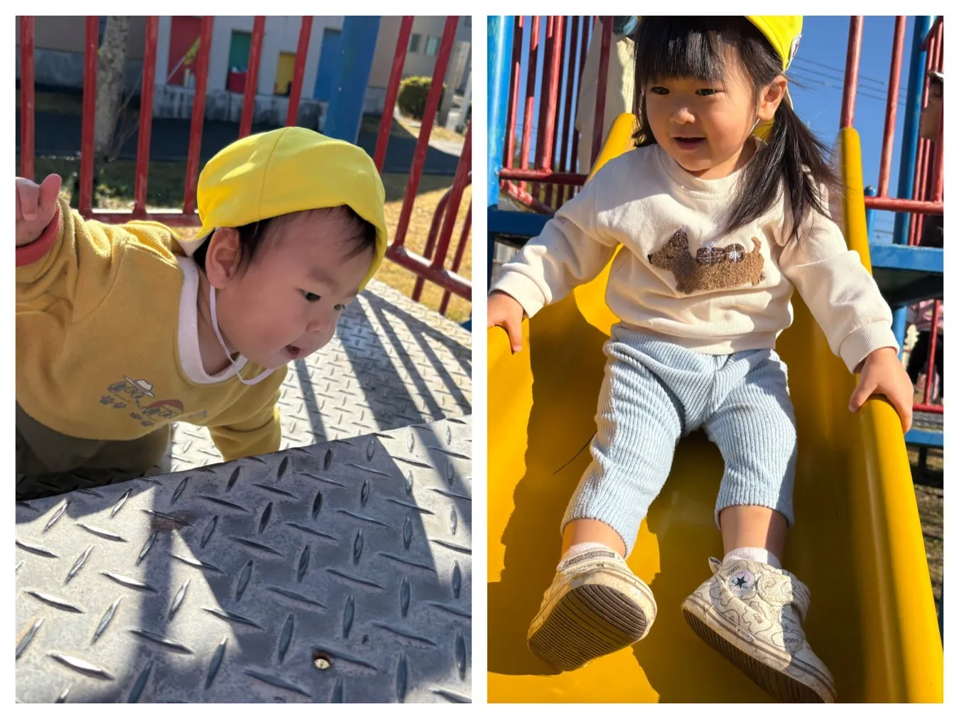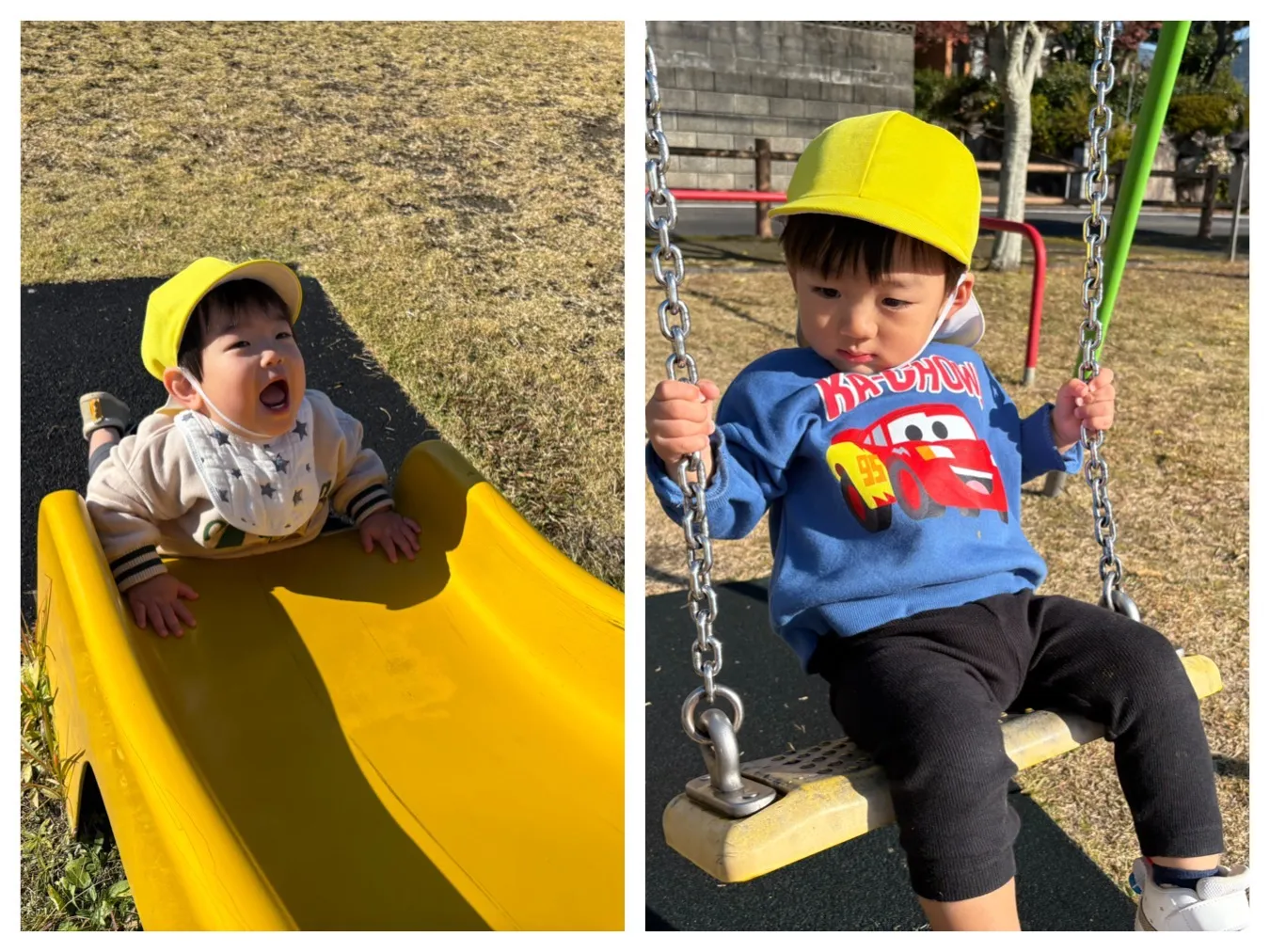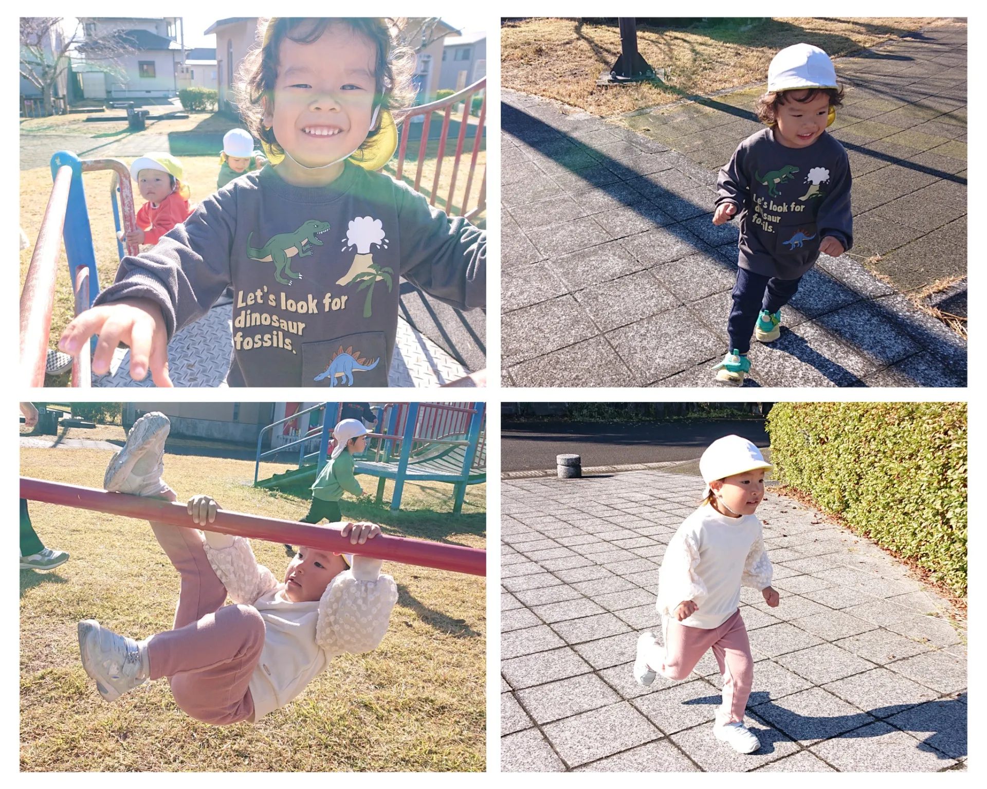 今日は、山田島公園に行きました。久しぶりのお散歩となって子どもたちは大喜びで、公園中をマラソンしたり、どんぐりを拾ったり、滑り台を楽しんだりしました。