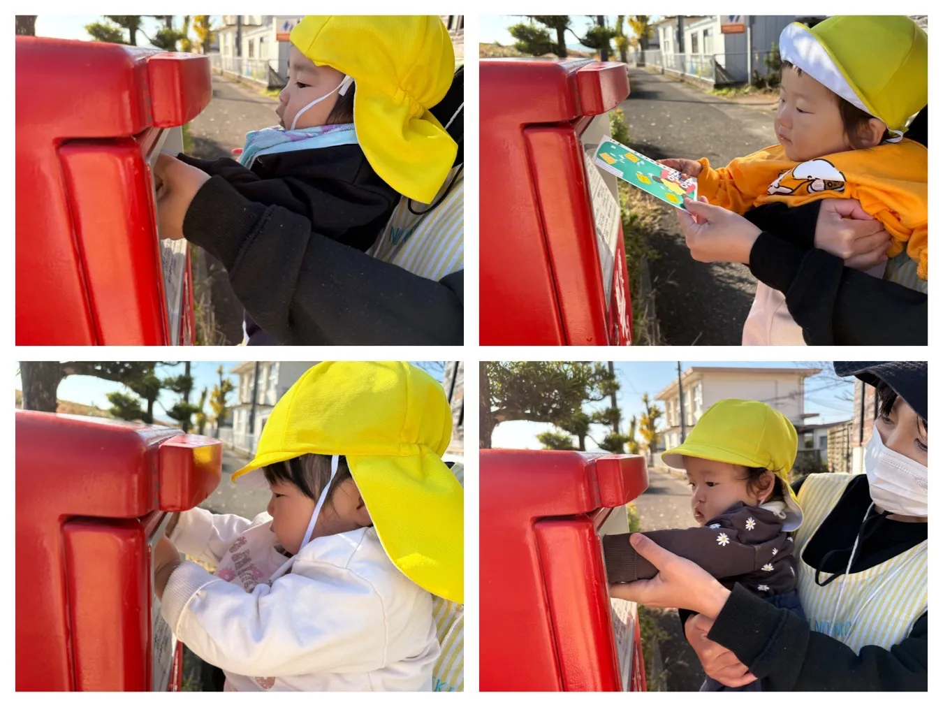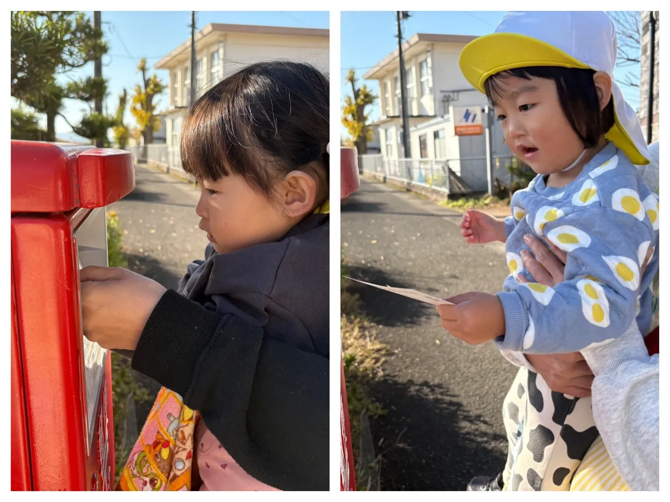 子どもたちはあまり見ないポストに年賀はがきを入れることが嬉しくてつい笑顔になっていました。