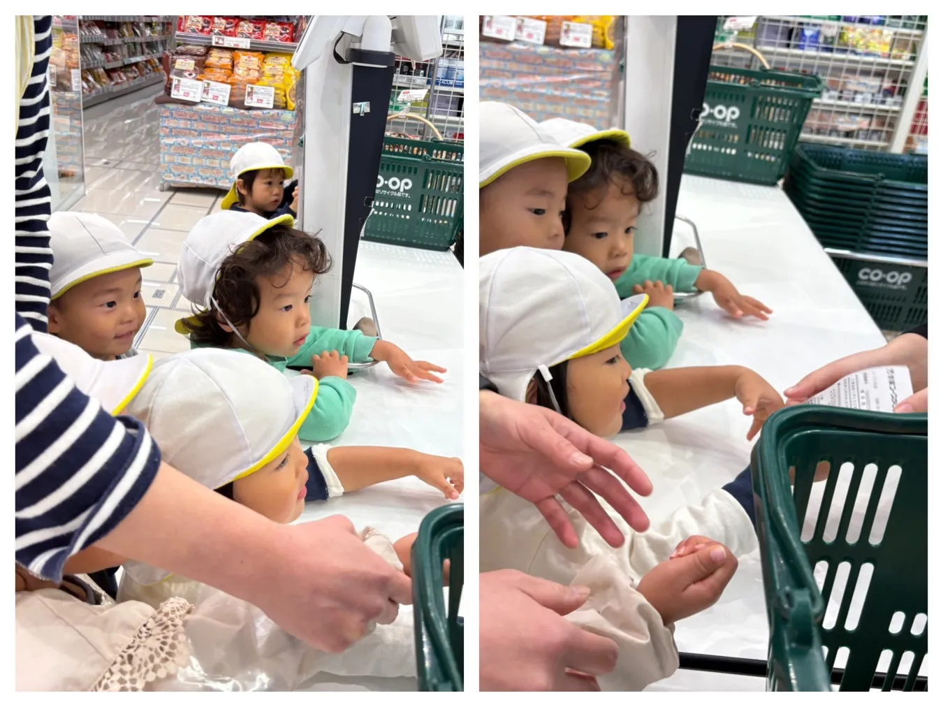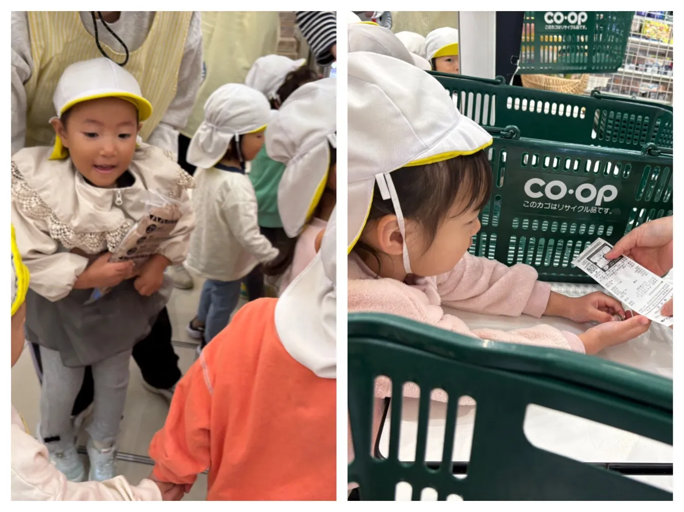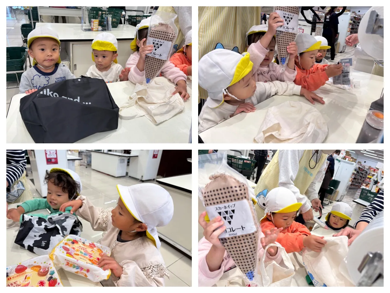 今日は、明日のクリスマスケーキ作りの材料を、COOP鹿児島川内店まで歩いて買いに行きました。先生からのお約束をしっかり聞いて、目的の「スポンジケーキ、ホイップクリーム2種類、デコレーションチョコ」を買って支払いや袋詰めも子ども達で頑張ってくれました。帰りはエコバックに入れて自分たちで持ち帰り、子どもたちの顔は大満足の表情を見せてくれました。