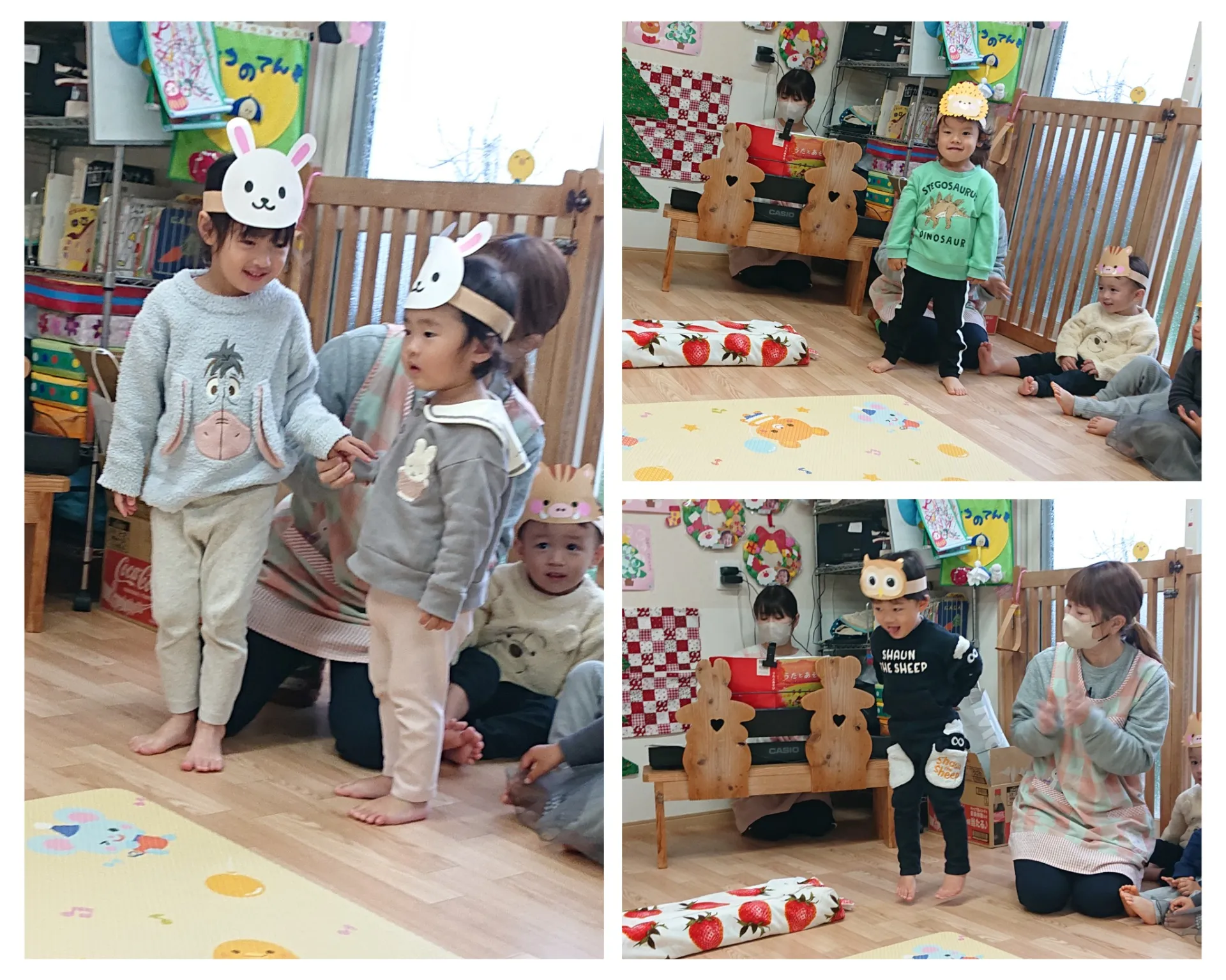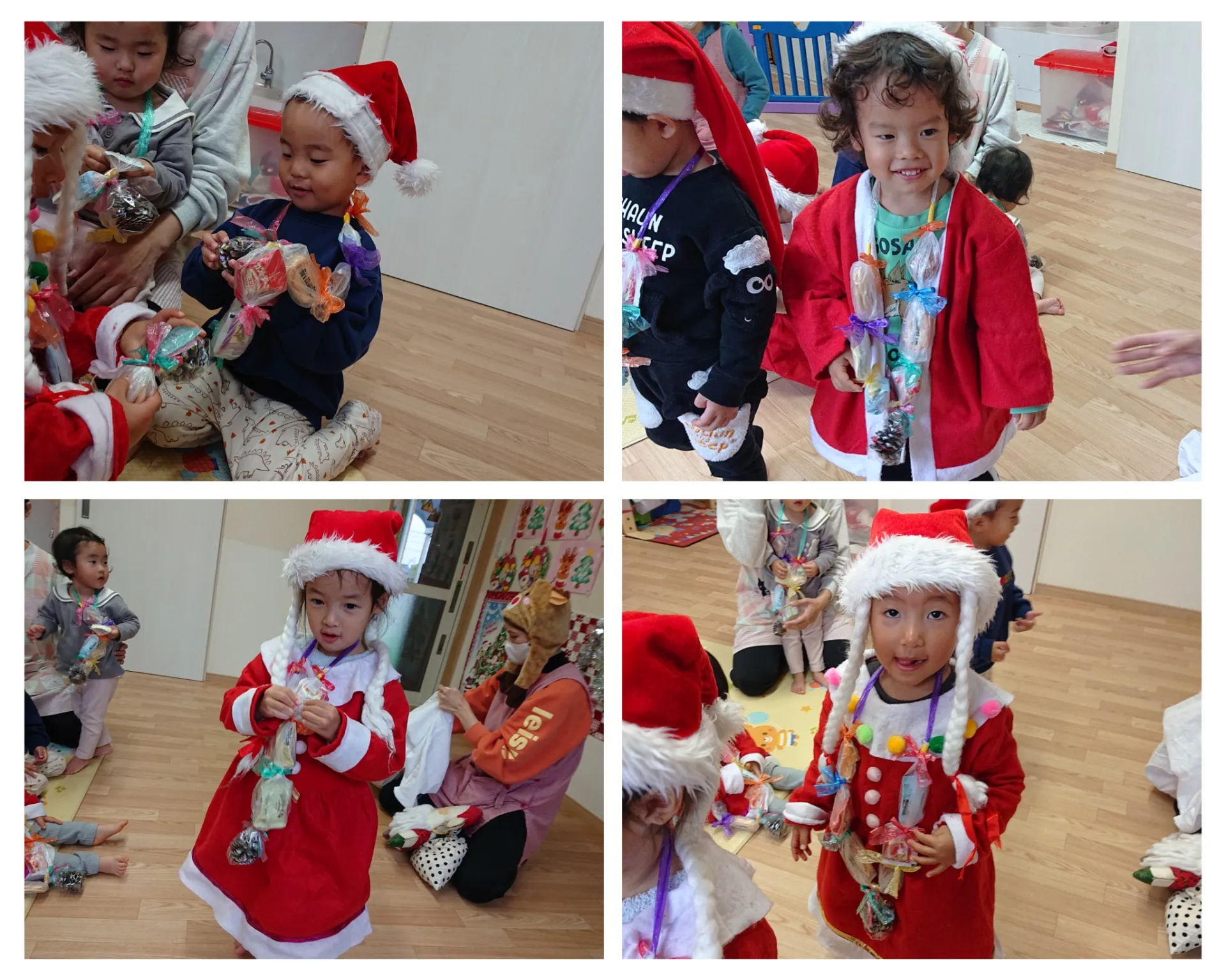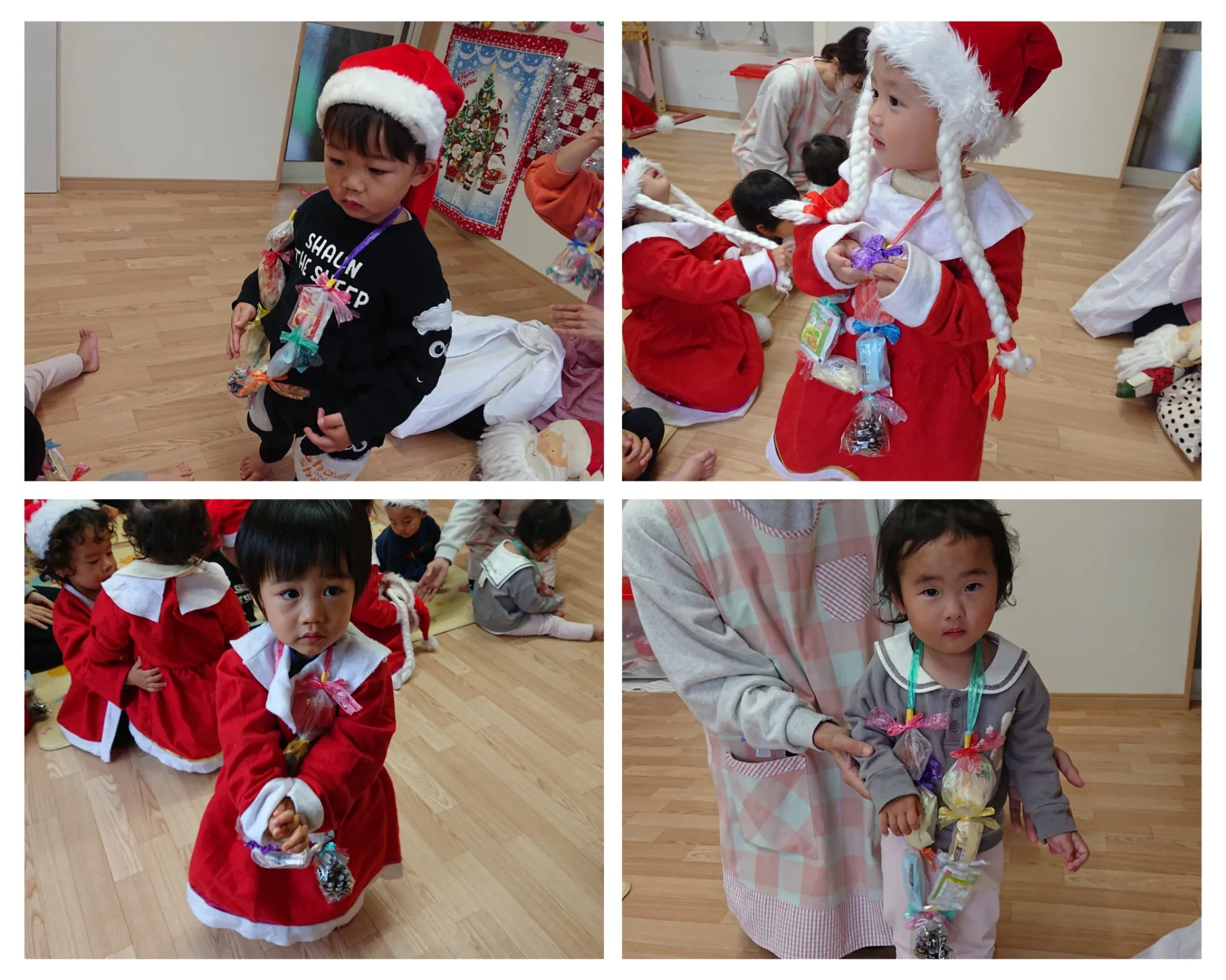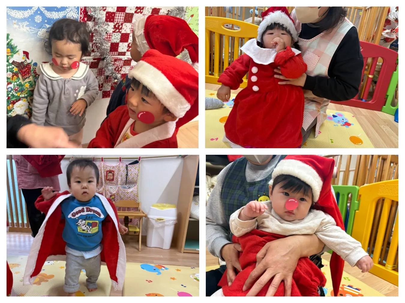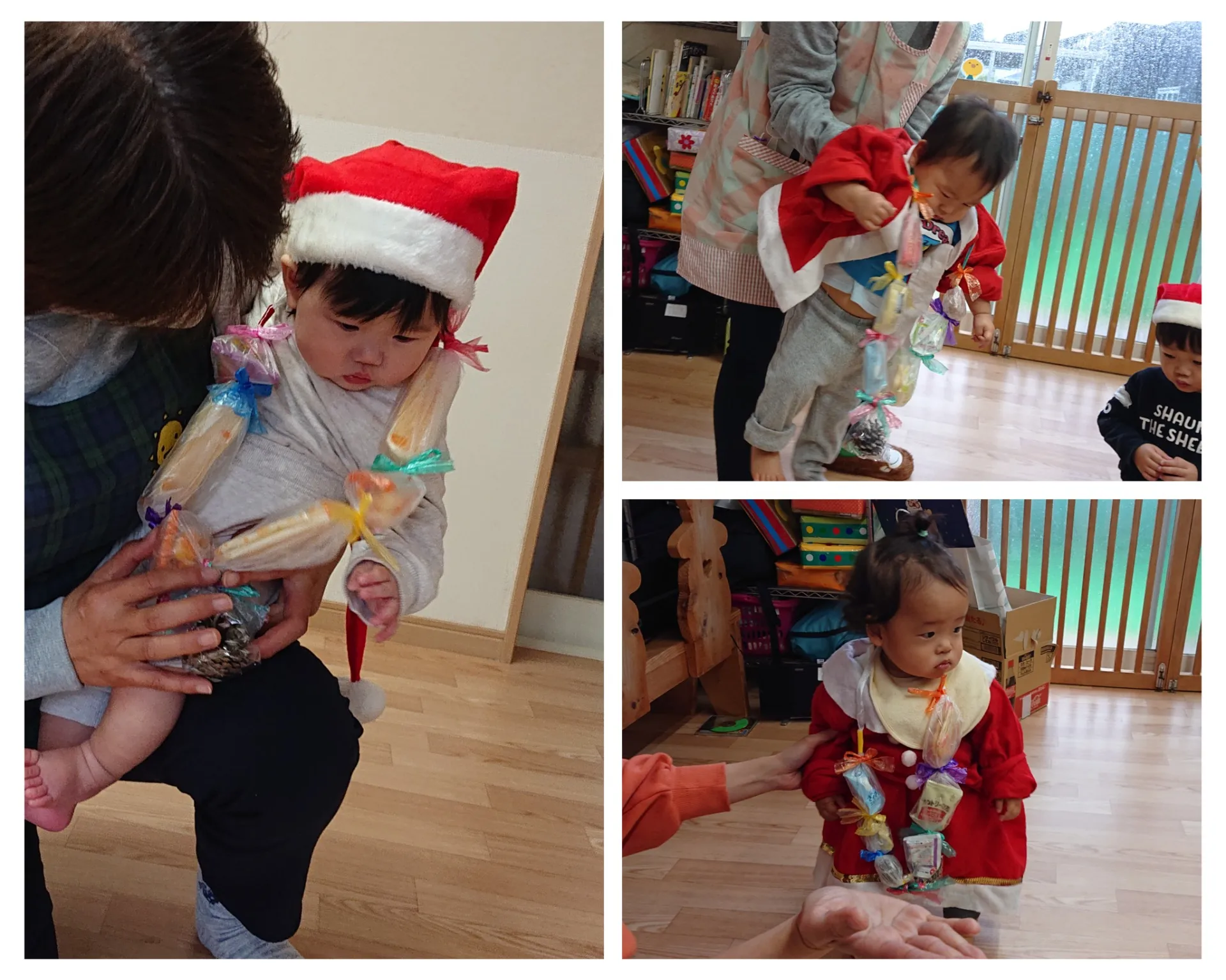 他にも、みんなでクリスマスソングを歌ったり、音楽に合わせて体を動かしたり、そして最後には園長サンタ(トナカイ)さんからプレゼントが届き、笑顔いっぱいの楽しいクリスマスパーティーになりました![]()