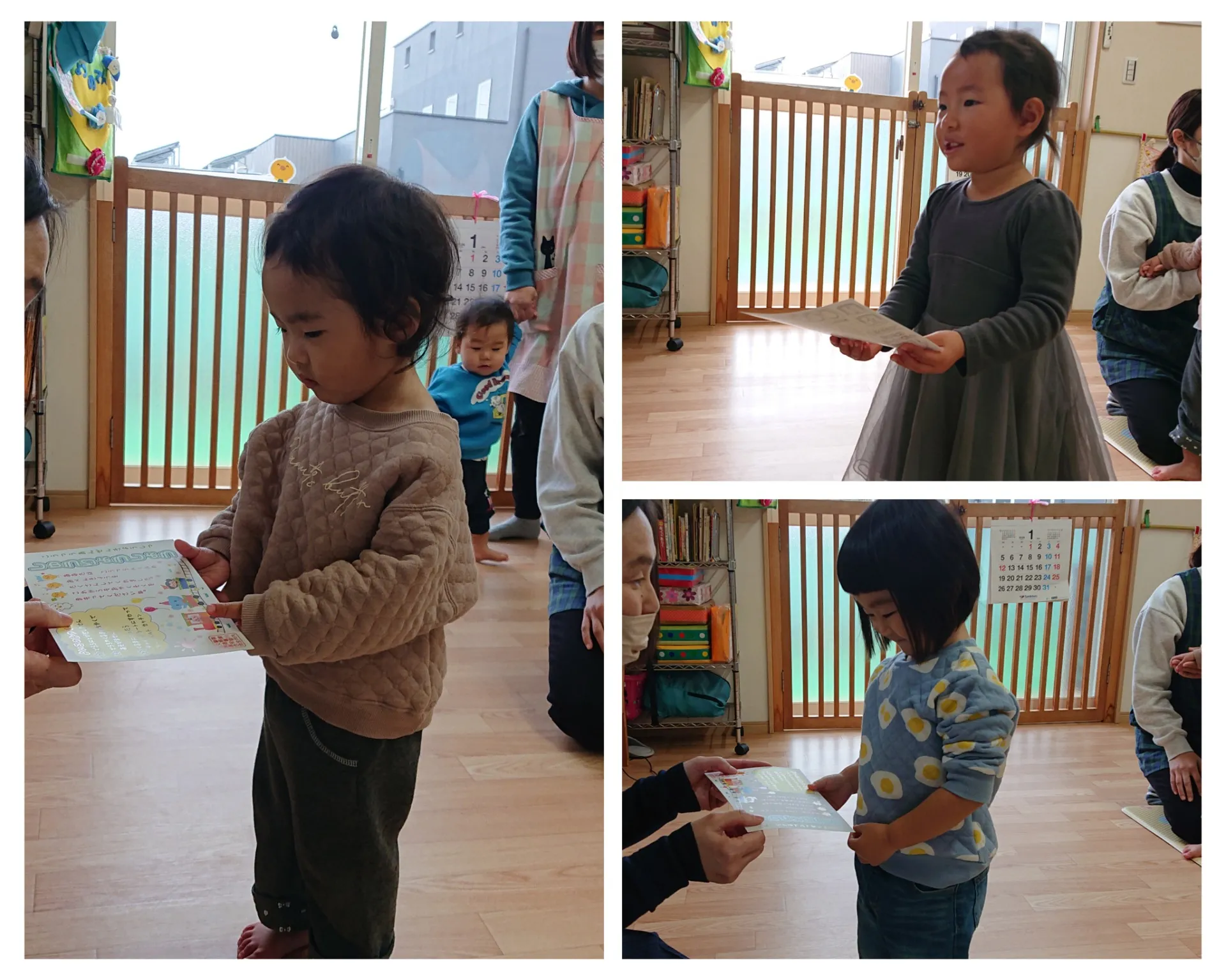 今日は、今年度3回目の交通安全教室に参加しました。交通安全協会の方が来られて、横断歩道の渡り方や、車に乗る時のお約束など大切なお話をしてくださいました。みんなしっかりとお話が聞けたので、最後には「しゅうりょうしょう」をいただきました。これからも、この交通安全教室で教えていただいたお約束を守っていきたいと思います。
