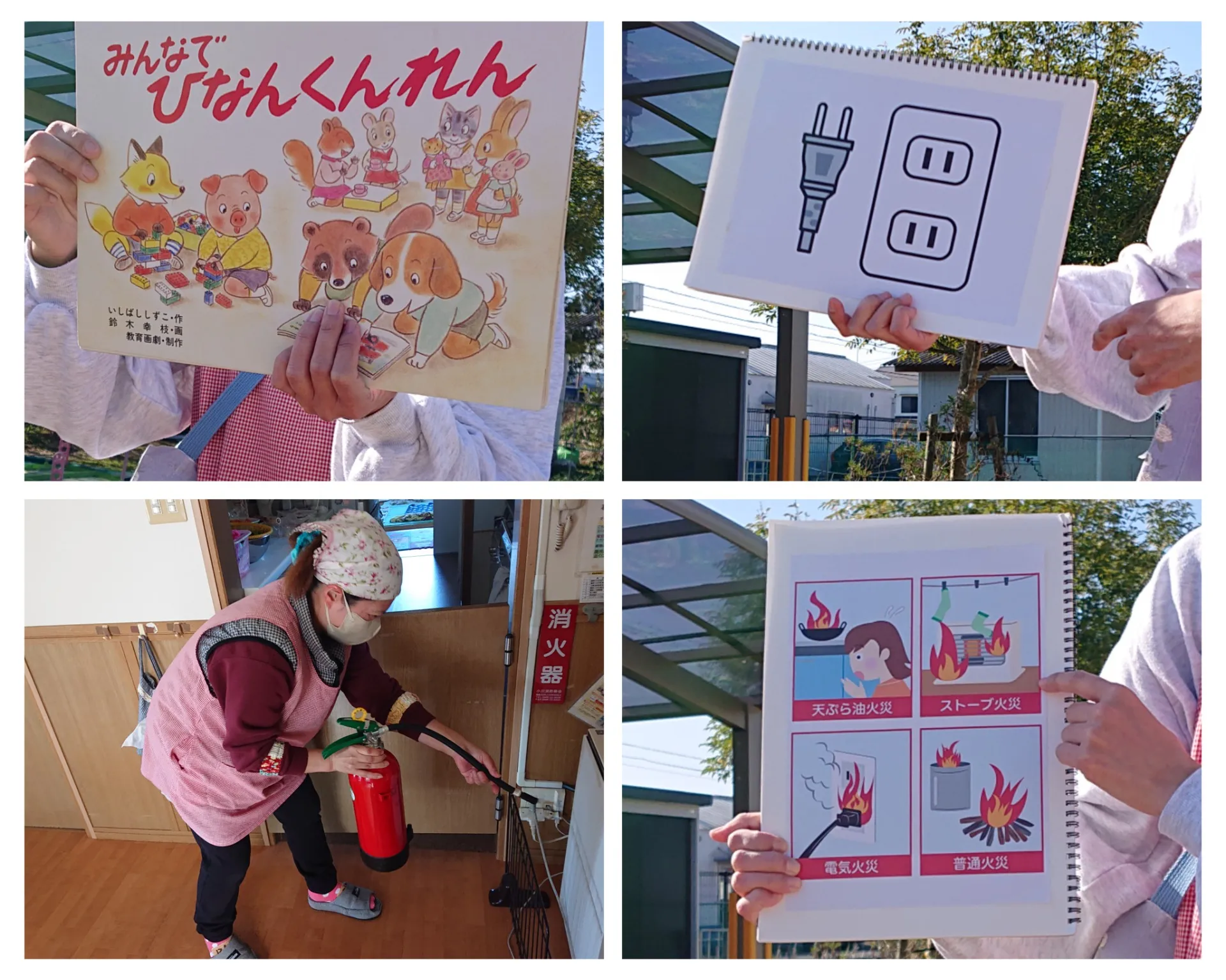 今日は、火災の避難訓練に参加しました。りんご組さんのコンセントから発火したことを想定し、火災の知らせを聞いて、全員広場まで速やかに避難することができました。火災の時は、煙を吸わないように口に手を当てて避難することを実行できていたお友達もいました。空気が乾燥しているこの季節。火災には十分気を付けていきたいですね。
