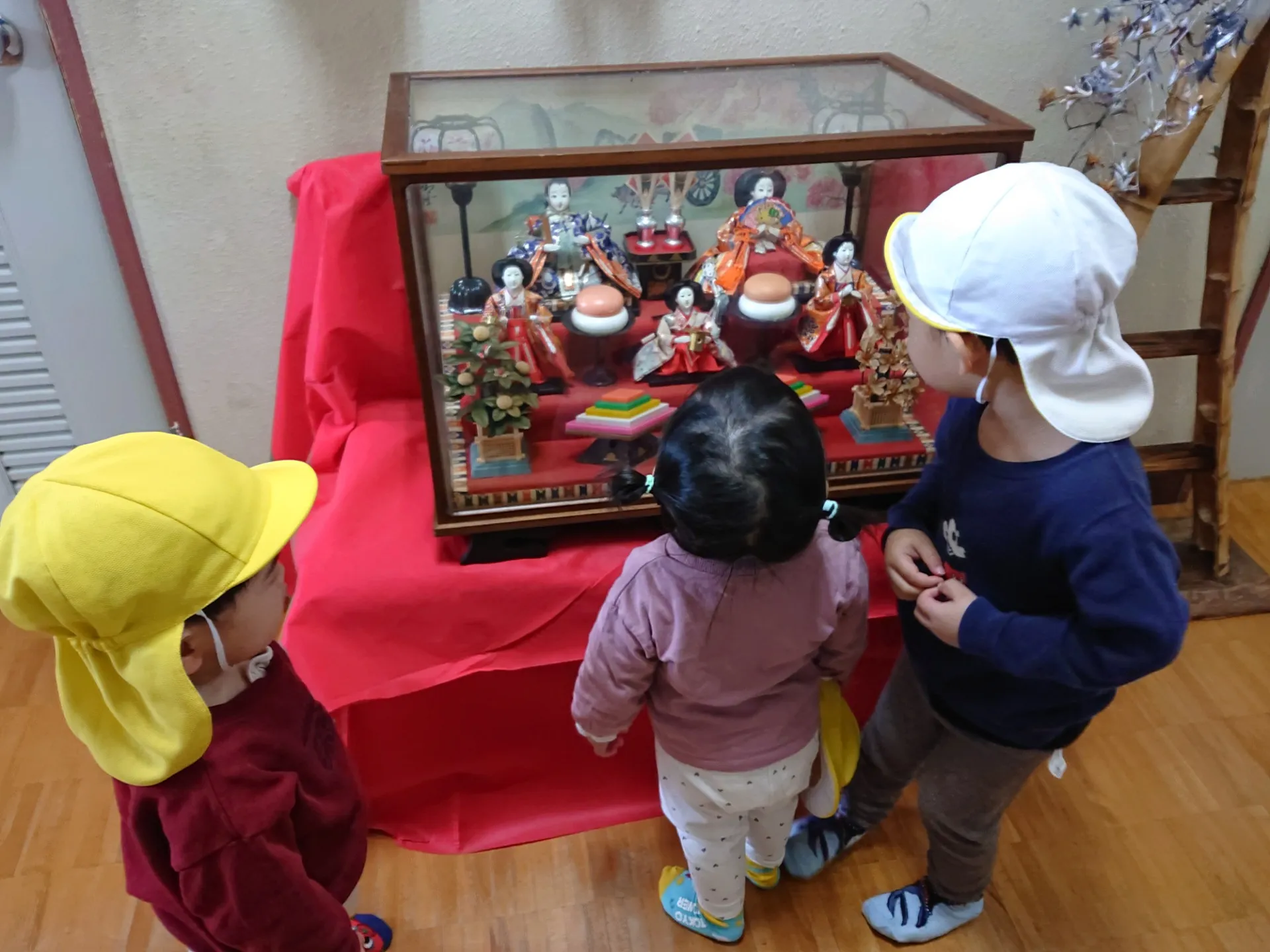 育英コミュニティにお雛様を見に行こう(いちご組、りんご組)