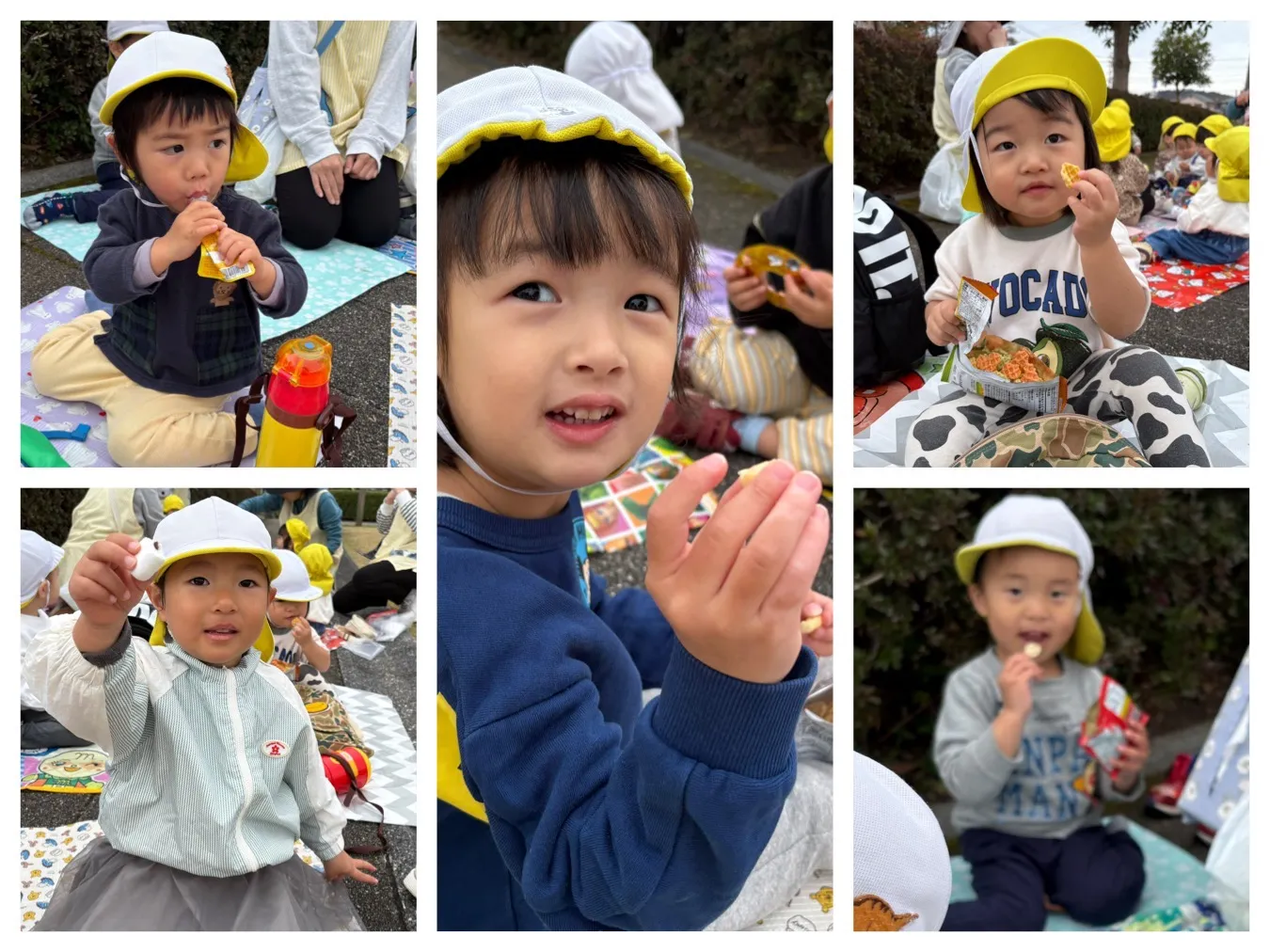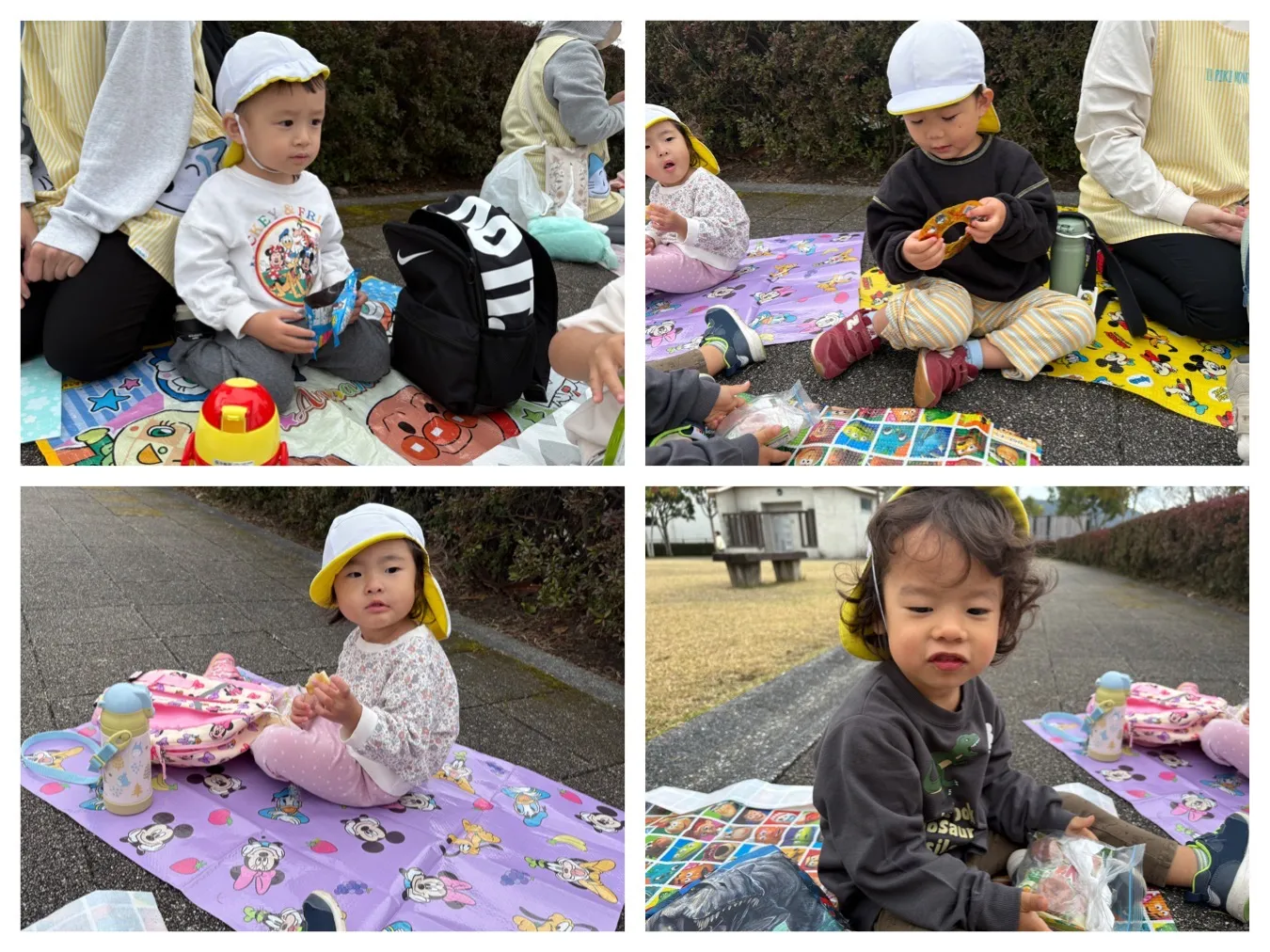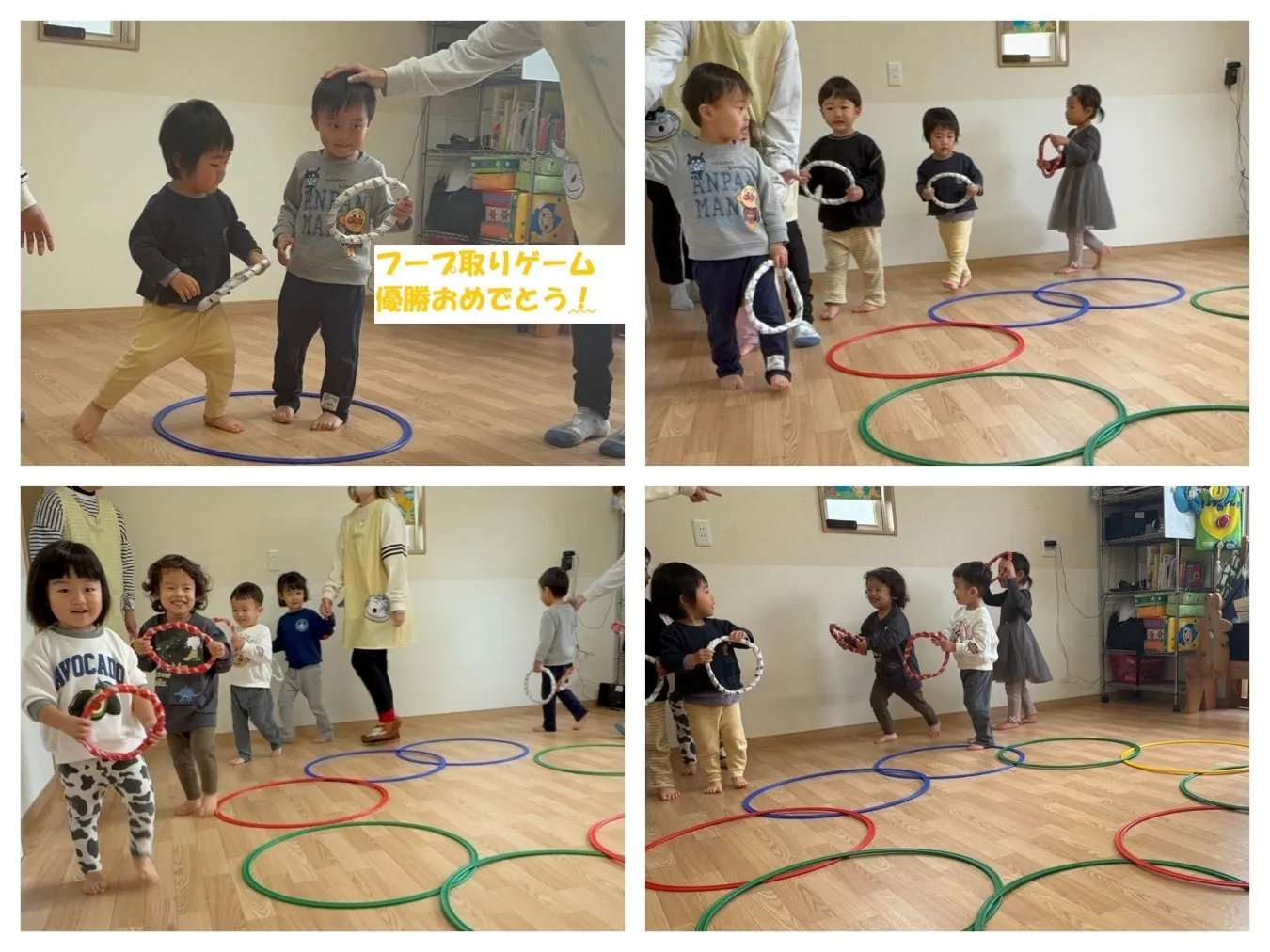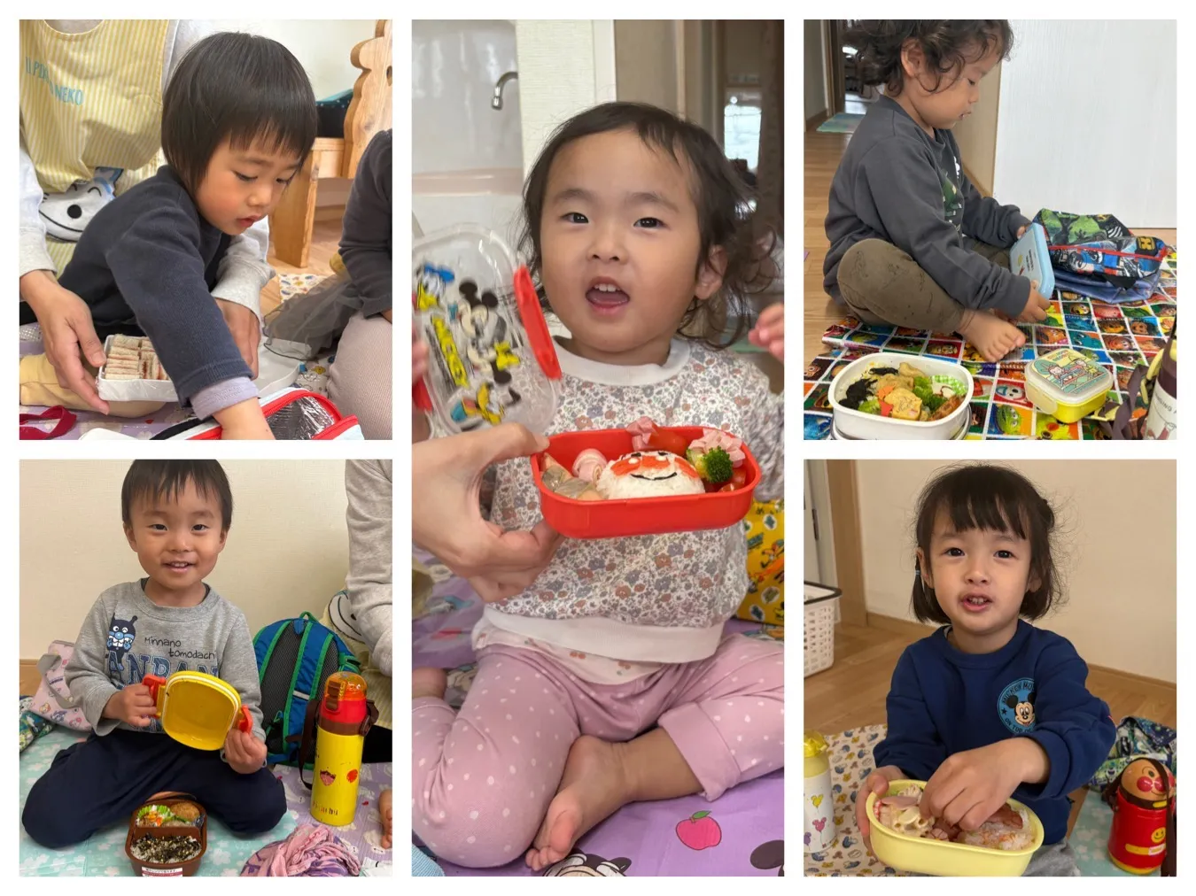 保育園に帰ってからはフープ取りやおおかみさんのゲームをして楽しく過ごし、今年度最後のお弁当はみんな一緒に食べ、素敵で美味しそうなお弁当がいっぱいで、子どもたちの幸せな顔が見られてとても嬉しかったです。保護者の皆様、毎月のお弁当作りにご協力いただき本当にありがとうございました。