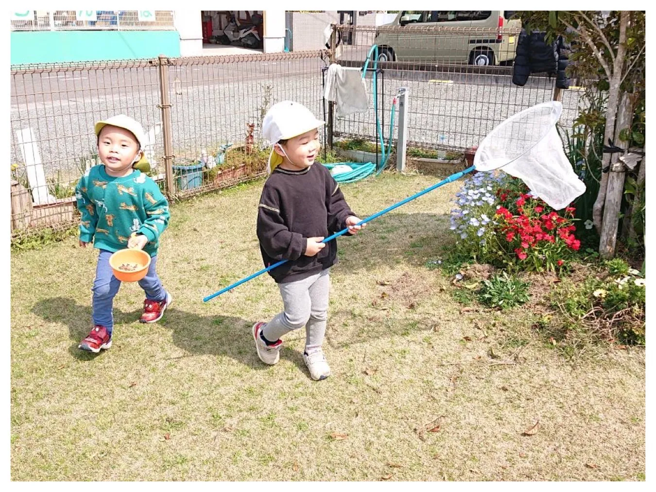 ポカポカお日様が暖かく、季節はすっかり春ですね。花壇のチューリップが次々に咲き始めたり、ちょうちょやダンゴムシを捕まえて観察したりと、春を満喫した子どもたちでした🌸