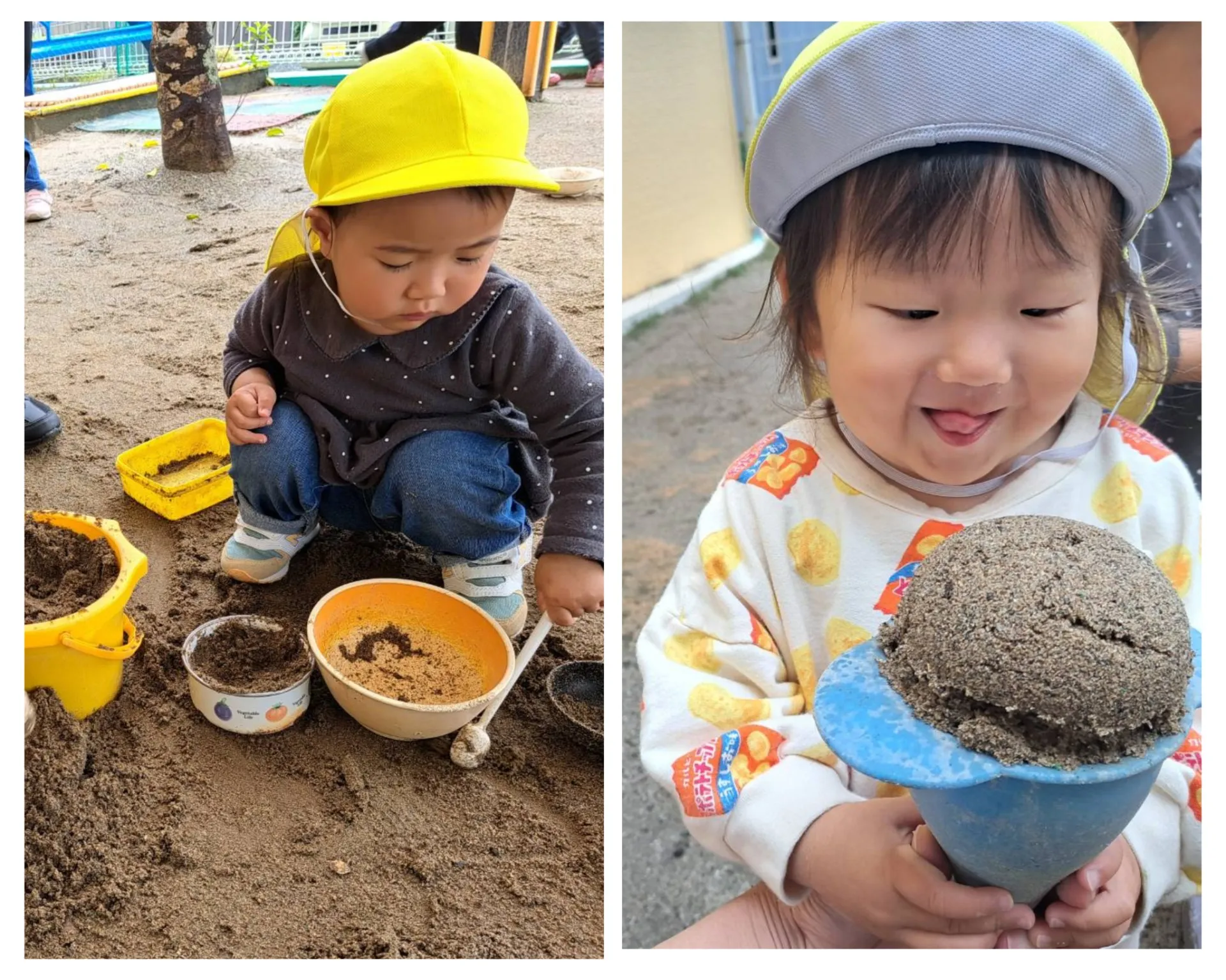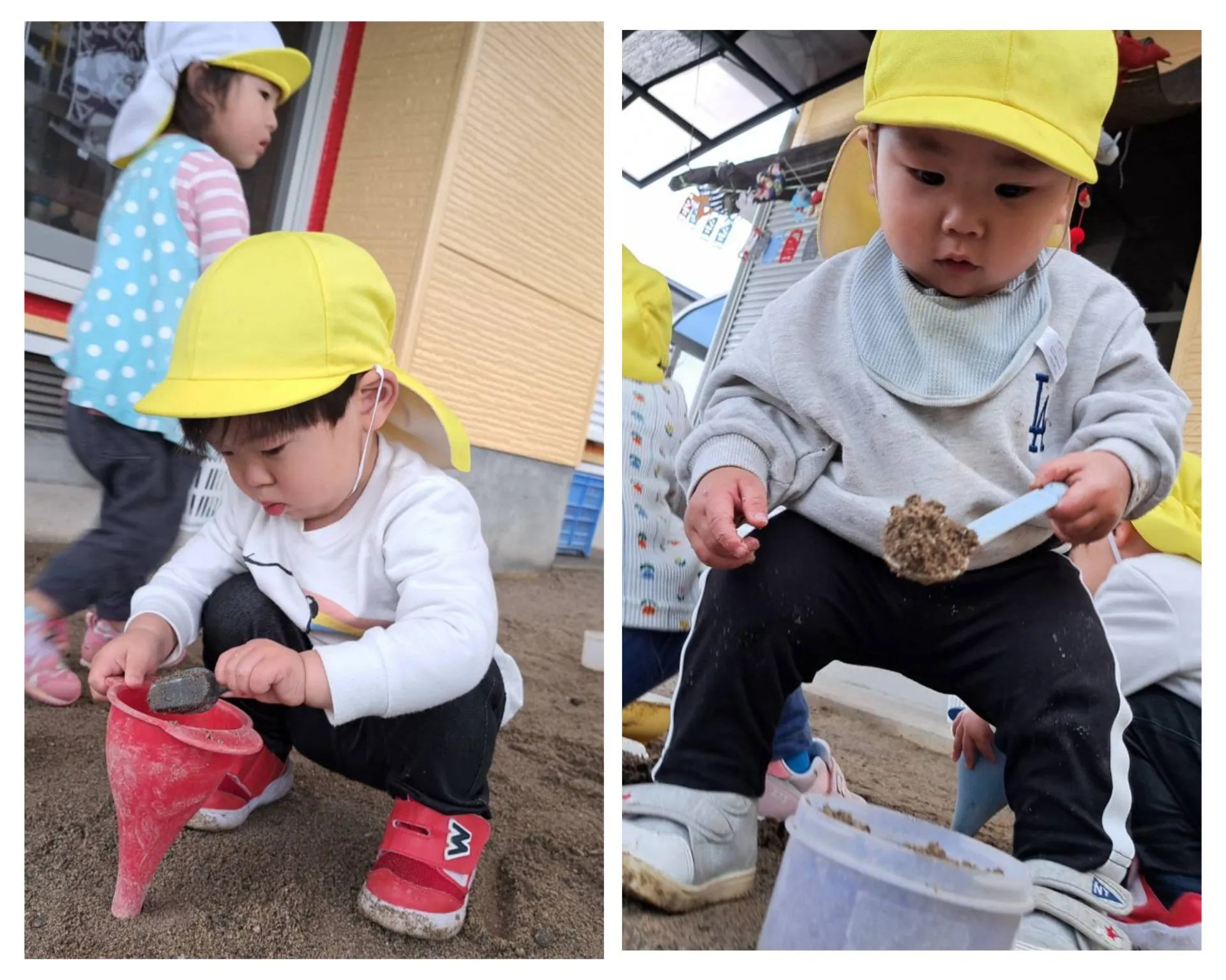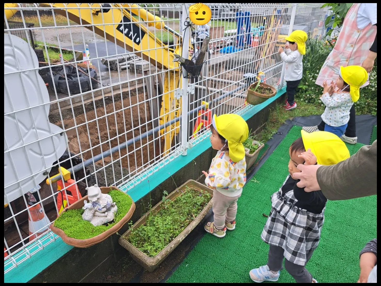 ここ数日、保育園の前の道路を工事中です。今日は、目の前で働く車がお仕事をしている所を見ることができました。ショベルカーが土をすくってダンプカーに積むと「わ~!」「すごーい」と拍手と歓声が上がりました👏迫力のある現場を見せてもらい、子どもたちもとても嬉しそうでした。